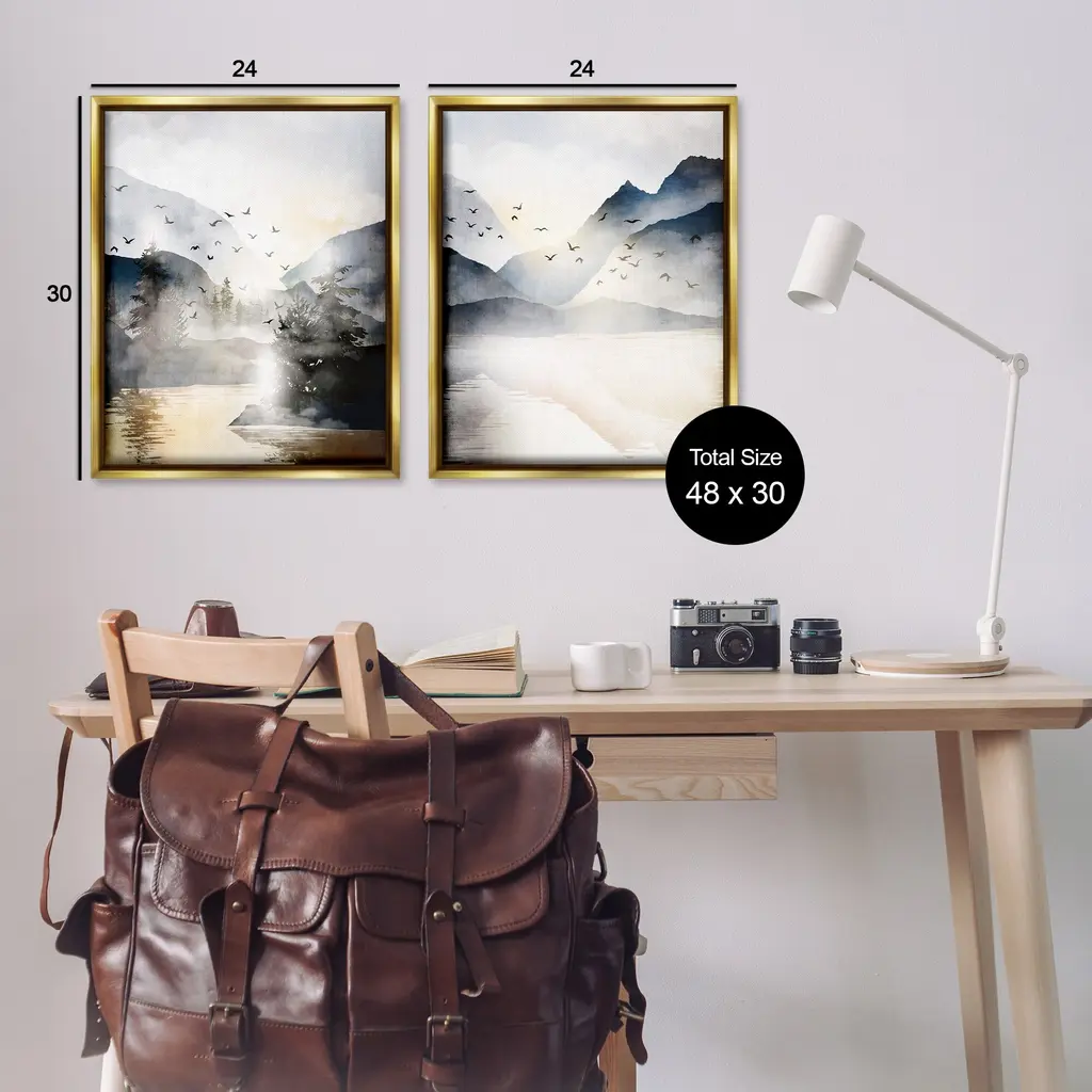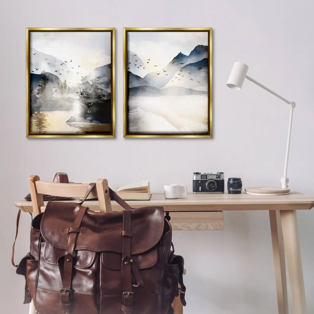 Elevate your home or office to the next level with Stupell Framed Floating Canvas Wall Art. Our premium hand-stretched canvas is mounted securely into a sturdy lightweight frame. The museum-style gap between the wrapped canvas and the box frame gives the illusion of floating artwork. Stupell Wall Art is made in the USA.Features: Dimensions: 2 Piece Set, Each Frame is 17 x 1.7 x 21Two Piece Floater Framed Canvas are available as 17x21 or 25x31 Panels. All Floater Frame Products have a 1.7" Depth.Wall Art is Ready to Hang with Hardware Free Hanging. No Installation required. For Easy Set Up Lean or Layer Artwork on Shelf or Against Wall. Artwork is Permently Fixed into the Frame.Our elevated 1.7" Thick Floating Frame is the perfect complement to our canvas style Wall Art. We use only the highest quality inks in house with industry leading printing solutions. Canvas is hand stretched over a durable wood foundation and then mounted securly into a Modern Box Frame. Made in the USA.Artwork Relates To: Nature, Mountain, Nature, Birds, Water, Lake, Sunlight, LandscapeDesign by JJ Design House LLC