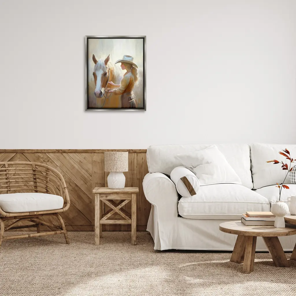 Stupell Sunlit Cowgirl & Horse Framed Floater Canvas Wall Art Design By Ramona Murdock - 25 X 31 - Grey
