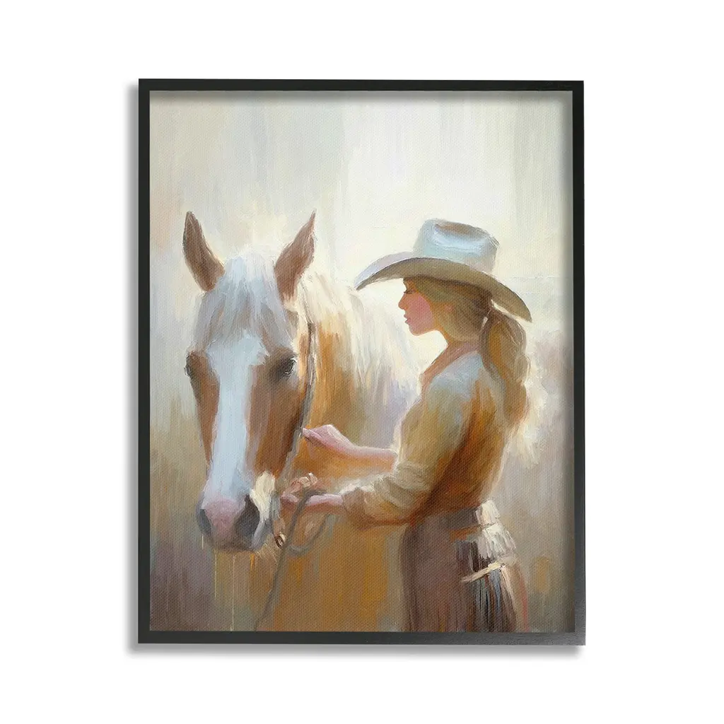 Add dimension to any room with our textured Framed Giclee Artwork. Our framed artwork is securely mounted into a 1.5-inch thick wood grain frame and ready to hang. Frames are available in three alluring styles: black, gray farmhouse and white. In addition, you should check out our oversized options if you want a statement piece. Stupell Wall Art is made in the USA.Features: Dimensions: 11 x 1.5 x 14 FramedFramed Giclee Products are available in the sizes 11"x14", 16"x20" or 24"x30". All Framed Giclee Products have a 1.5" Depth. Wall Art is Ready to Hang with Hardware Free Hanging. No installation required. For Easy Set Up Lean or Layer Artwork on Shelf or Against Wall.Our giclée prints are carefully mounted on a durable MDF backing, and then perfectly finished in a 1.5 inch thick woodgrain frame. Mounted frame colors include black, gray farmhouse and white. Made In USA.Artwork Relates To: Equestrian, Rodeo, Country, Southwestern, Cowgirl, Animal, HorseDesign by Ramona Murdock