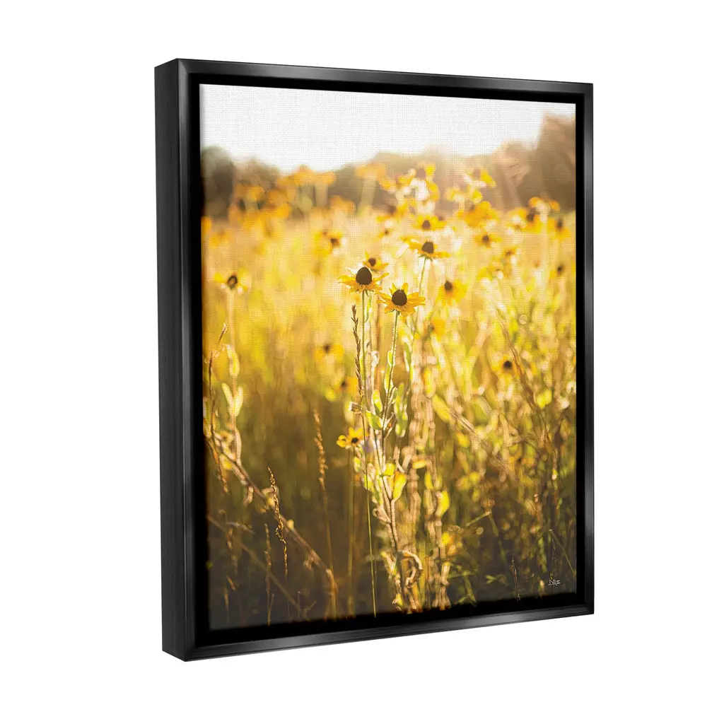 Stupell Sunlit Daisy Meadow Framed Floater Canvas Wall Art Design By Donnie Quillen - 17 X 21 - Black