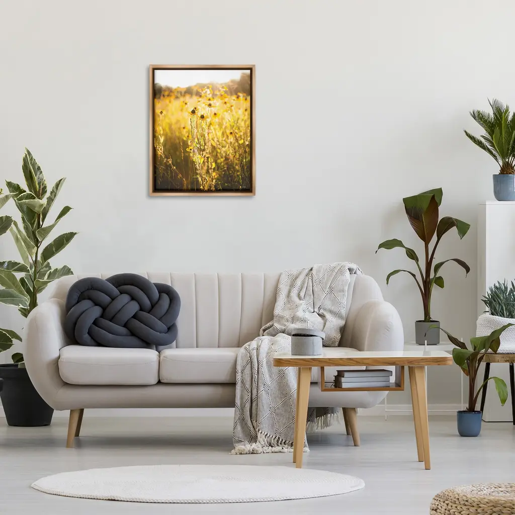 Elevate your home or office to the next level with Stupell Framed Floating Canvas Wall Art. Our premium hand-stretched canvas is mounted securely into a sturdy lightweight frame. The museum-style gap between the wrapped canvas and the box frame gives the illusion of floating artwork. Stupell Wall Art is made in the USA.Features: Dimensions: 17 x 1.7 x 21 Frame, 16 x 1.5 x 20 Canvas ArtFloating Frame Canvas Products are available in sizes 17"x21" and 25"x31". All Floating Frame Canvas Products have a 1.7" Depth.Wall Art is Ready to Hang with Hardware Free Hanging. No Installation required. For Easy Set Up Lean or Layer Artwork on Shelf or Against Wall. Artwork is Permently Fixed into the Frame.Our elevated 1.7" Thick Floating Frame is the perfect complement to our canvas style Wall Art. We use only the highest quality inks in house with industry leading printing solutions. Canvas is hand stretched over a durable wood foundation and then mounted securly into a Modern Box Frame. Made in the USA.Artwork Relates To: Flower, Plant, Petal, Botanical, Floral, Cottage, Country, Landscape, Sunlight, NatureDesign by Donnie Quillen