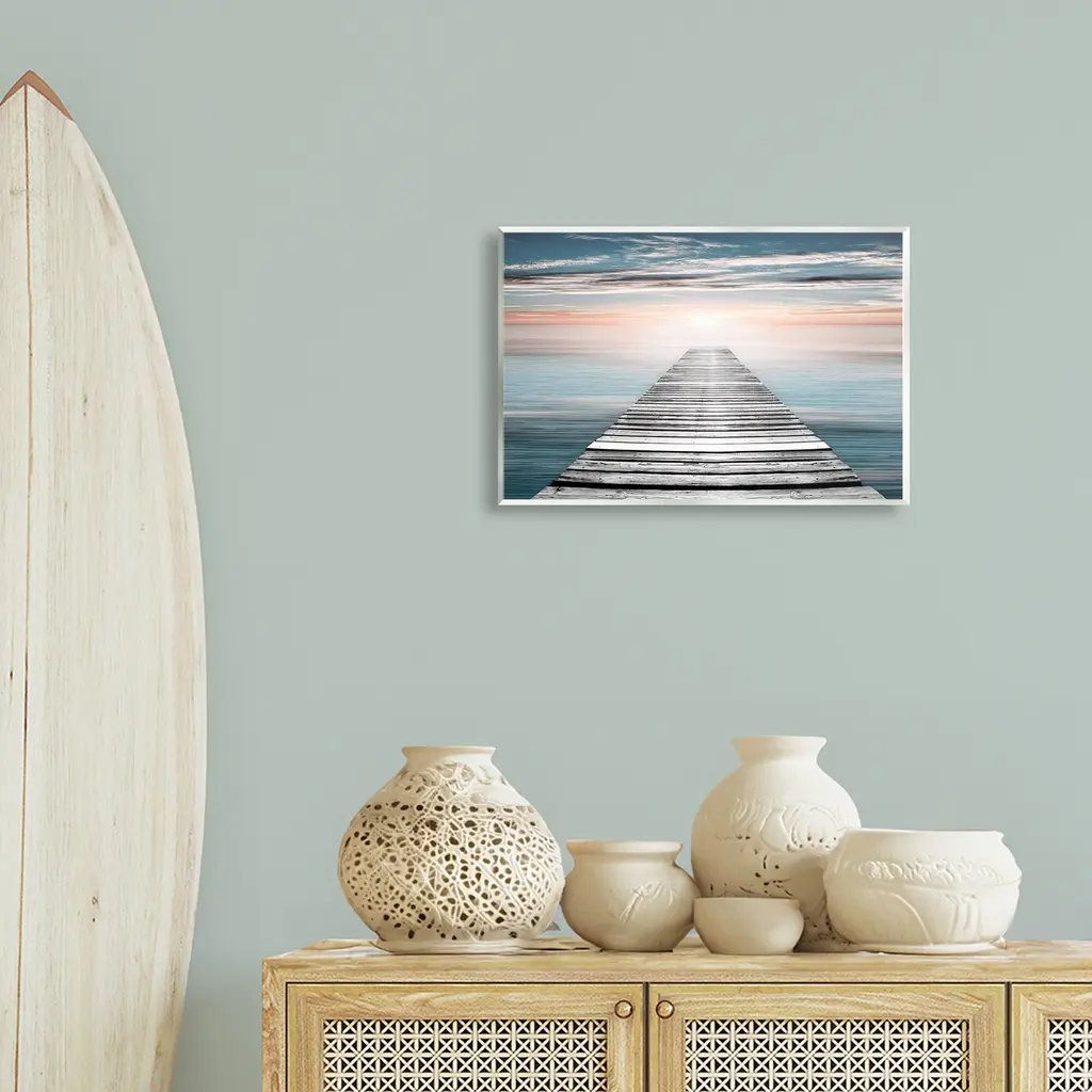 Our wall plaques start as high-quality lithograph prints mounted on durable 0.5-inch thick MDF wood. Each piece is hand finished and comes with a fresh layer of white foil on the sides to give it a crisp, clean look. Plaques arrive ready to hang without installation and come with removable plastic corners to keep them from damage in transit. Stupell Wall Art is made in the USA.Features: Dimensions: 15 x 0.5 x 10 InchesWall Plaque Product Sizes Include 15"x10" and 19"x13". All wall plaque products have a 0.5" Depth. Wall Art is Ready to Hang with Hardware Free Hanging. No installation required. For Easy Set Up Lean or Layer Artwork on Shelf or Against Wall.All of our wall plaques start off as high quality lithograph prints that are then mounted on durable 0.5 inch thick MDF wood. Each piece is hand finished and comes with a fresh layer of foil on the sides to give it a crisp clean look. Made In USA.Artwork Relates To: Lake, Ocean, Sea, Dock, Sunset, SunriseDesign by Natalie Carpentieri