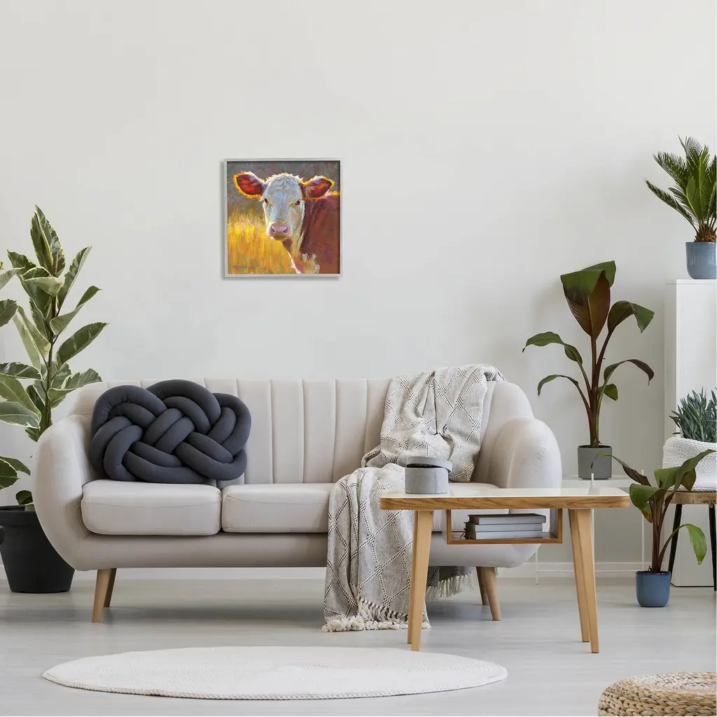 Our Framed Giclee Wall Art adds a touch of class to any space in your home or office. Frames are available in three alluring styles: black, gray farmhouse and white. Our textured artwork will add more depth and dimension to any space. Each piece is mounted with a 1.5 inch thick wood grain frame that is ready to hang! Looking for a statement piece? We have oversized artwork available.Features: Dimensions: 12 x 1.5 x 12 FramedFramed Giclee Sizes Include Standard: 12 x 1.5 x 12 Large: 17 x 1.5 x 17 Oversized: 24 x 1.5 x 24Wall Art is Ready to Hang - No Installation or Hardware Needed. For Easy Set Up Lean or Layer Artwork on Shelf or Against Wall.Our giclée prints are carefully mounted on a durable MDF backing, and then perfectly finished in a 1.5 inch thick woodgrain frame. Mounted frame colors include black, gray farmhouse and white. Made In USA.Artwork Relates To: Cattle, Mammal, Animal, Painting, Farm Animal, CowDesign by Rita Kirkman