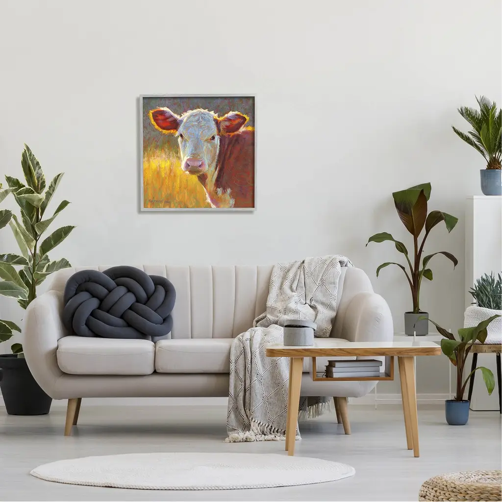 Our Framed Giclee Wall Art adds a touch of class to any space in your home or office. Frames are available in three alluring styles: black, gray farmhouse and white. Our textured artwork will add more depth and dimension to any space. Each piece is mounted with a 1.5 inch thick wood grain frame that is ready to hang! Looking for a statement piece? We have oversized artwork available.Features: Dimensions: 12 x 1.5 x 12 FramedFramed Giclee Sizes Include Standard: 12 x 1.5 x 12 Large: 17 x 1.5 x 17 Oversized: 24 x 1.5 x 24Wall Art is Ready to Hang - No Installation or Hardware Needed. For Easy Set Up Lean or Layer Artwork on Shelf or Against Wall.Our giclée prints are carefully mounted on a durable MDF backing, and then perfectly finished in a 1.5 inch thick woodgrain frame. Mounted frame colors include black, gray farmhouse and white. Made In USA.Artwork Relates To: Cattle, Mammal, Animal, Painting, Farm Animal, CowDesign by Rita Kirkman