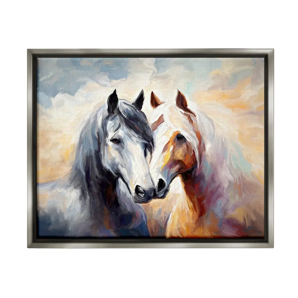 Elevate your home or office to the next level with Stupell Framed Floating Canvas Wall Art. Our premium hand-stretched canvas is mounted securely into a sturdy lightweight frame. The museum-style gap between the wrapped canvas and the box frame gives the illusion of floating artwork. Stupell Wall Art is made in the USA.Features: Dimensions: 21 x 1.7 x 17 Frame, 20 x 1.5 x 16 Canvas ArtFloating Frame Canvas Products are available in sizes 21"x17" and 31"x25". All Floating Frame Canvas Products have a 1.7" Depth.Wall Art is Ready to Hang with Hardware Free Hanging. No Installation required. For Easy Set Up Lean or Layer Artwork on Shelf or Against Wall. Artwork is Permently Fixed into the Frame.Our elevated 1.7" Thick Floating Frame is the perfect complement to our canvas style Wall Art. We use only the highest quality inks in house with industry leading printing solutions. Canvas is hand stretched over a durable wood foundation and then mounted securly into a Modern Box Frame. Made in the USA.Artwork Relates To: Animal, Horse, Mammal, Stallion, Farm, Country, Southwestern, Traditional, LandscapeDesign by Ramona Murdock