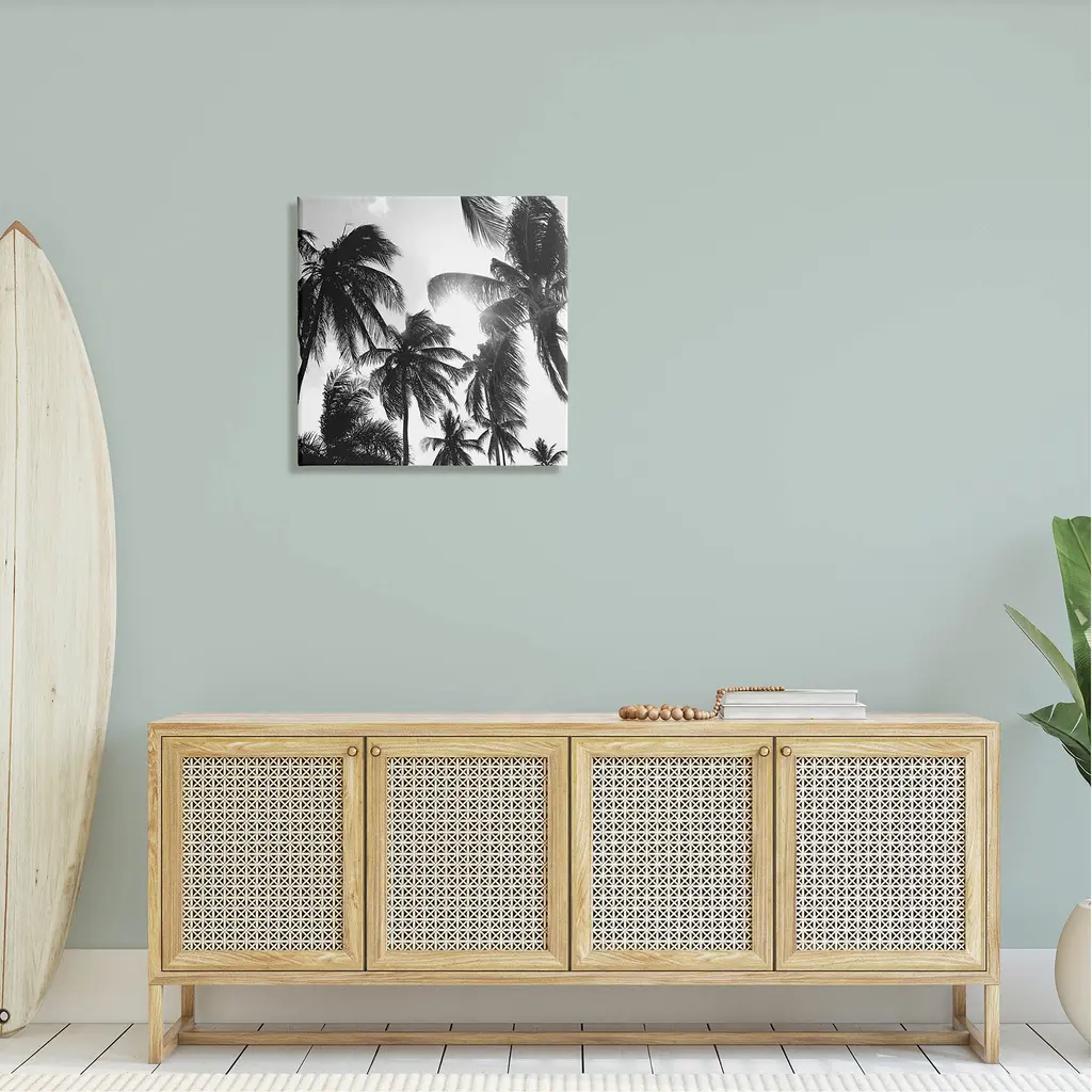 Proudly made in the USA, Our stretched canvas is created with the highest standards. We use only the highest quality inks and canvas on our in house Mimaki printers, and then hand cut and stretch each piece over a 1.5 inch thick wooden frame for hanging. The art comes ready to hang with no installation required.Features: Dimensions: 17 x 1.5 x 17 InchesStretched Canvas Sizes Include Standard: 17 x 1.5 x 17 Large: 24 x 1.5 x 24 X-Large: 30 x 1.5 x 30 Oversized: 36 x 1.5 x 36Wall Art is Ready to Hang - No Installation or Hardware Needed. For Easy Set Up Lean or Layer Artwork on Shelf or Against Wall.Our stretched canvas is created with the highest standards. We use only the highest quality inks and canvas on our in house Mimaki printers, and then hand cut and stretch each piece over a 1.5 inch thick wooden frame for hanging. Made In USA.Artwork Relates To: Tree, Palm Tree, Plant, Vegetation, Summer, Scenery, Sky, Photography, MonochromeDesign by Natalie Carpentieri