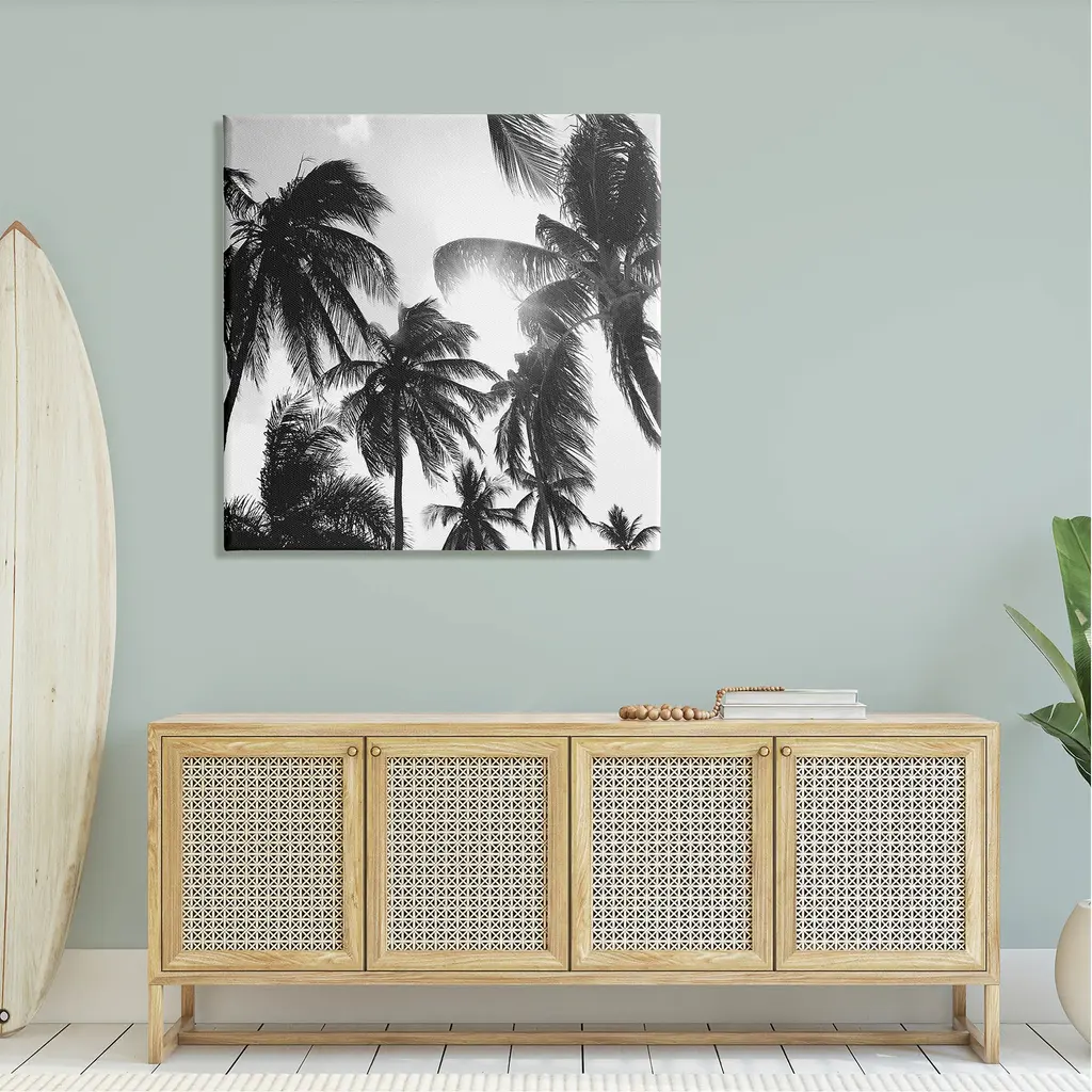 Proudly made in the USA, Our stretched canvas is created with the highest standards. We use only the highest quality inks and canvas on our in house Mimaki printers, and then hand cut and stretch each piece over a 1.5 inch thick wooden frame for hanging. The art comes ready to hang with no installation required.Features: Dimensions: 17 x 1.5 x 17 InchesStretched Canvas Sizes Include Standard: 17 x 1.5 x 17 Large: 24 x 1.5 x 24 X-Large: 30 x 1.5 x 30 Oversized: 36 x 1.5 x 36Wall Art is Ready to Hang - No Installation or Hardware Needed. For Easy Set Up Lean or Layer Artwork on Shelf or Against Wall.Our stretched canvas is created with the highest standards. We use only the highest quality inks and canvas on our in house Mimaki printers, and then hand cut and stretch each piece over a 1.5 inch thick wooden frame for hanging. Made In USA.Artwork Relates To: Tree, Palm Tree, Plant, Vegetation, Summer, Scenery, Sky, Photography, MonochromeDesign by Natalie Carpentieri