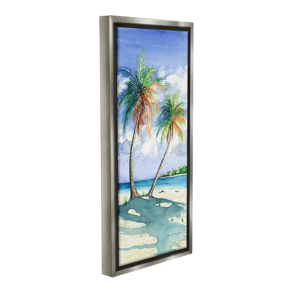 Elevate your home or office to the next level with Stupell Framed Floating Canvas Wall Art. Our premium hand-stretched canvas is mounted securely into a sturdy lightweight frame. The museum-style gap between the wrapped canvas and the box frame gives the illusion of floating artwork. Stupell Wall Art is made in the USA.Features: Dimensions: 11 x 1.7 x 25 Frame, 10 x 1.5 x 24 Canvas ArtFloating Frame Canvas Products are available in sizes 11"x25" and 14"x31". All Floating Frame Canvas Products have a 1.7" Depth.Wall Art is Ready to Hang with Hardware Free Hanging. No Installation required. For Easy Set Up Lean or Layer Artwork on Shelf or Against Wall. Artwork is Permently Fixed into the Frame.Our elevated 1.7" Thick Floating Frame is the perfect complement to our canvas style Wall Art. We use only the highest quality inks in house with industry leading printing solutions. Canvas is hand stretched over a durable wood foundation and then mounted securly into a Modern Box Frame. Made in the USA.Artwork Relates To: Sky, Horizon, Sea, Water, Beach, Coast, Shoreline, Scenery, Sea Waves, Summer, Tropical, Palm TreeDesign by Christine Reichow