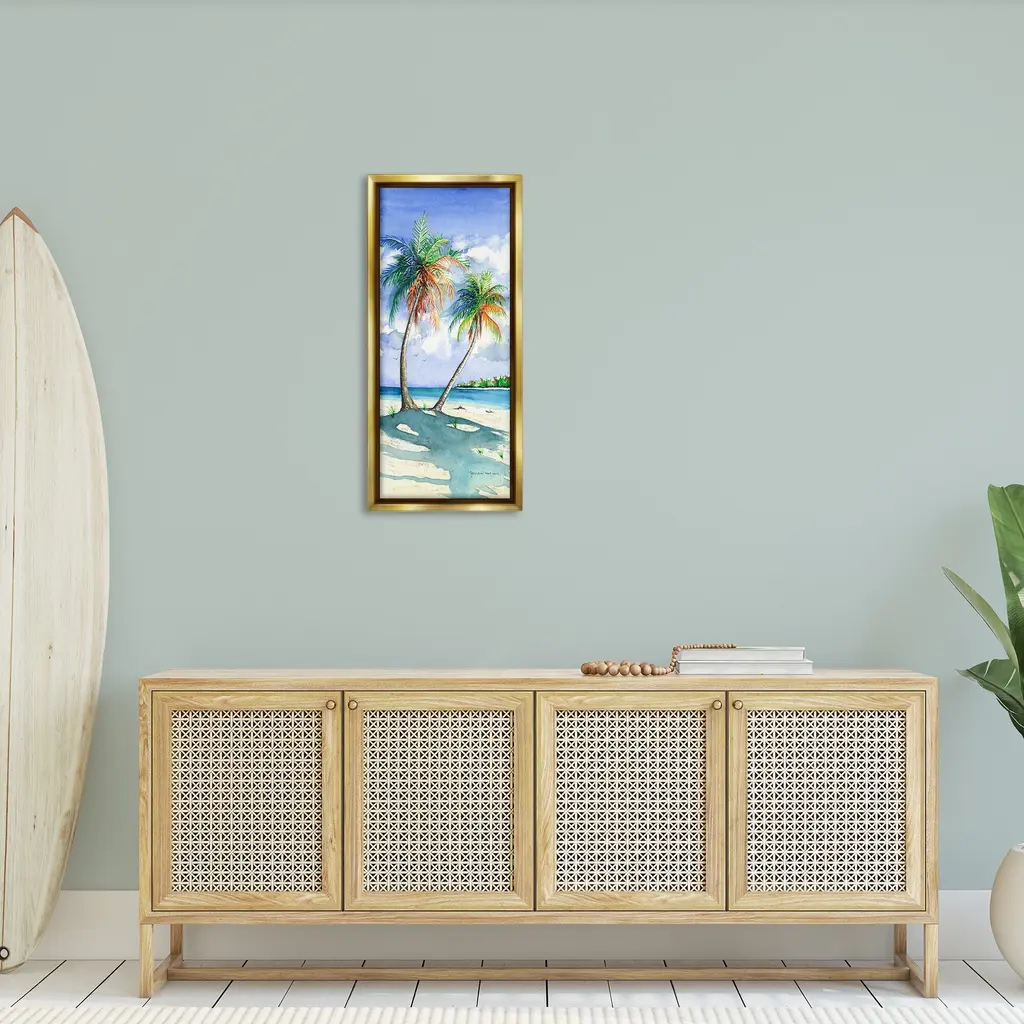 Elevate your home or office to the next level with Stupell Framed Floating Canvas Wall Art. Our premium hand-stretched canvas is mounted securely into a sturdy lightweight frame. The museum-style gap between the wrapped canvas and the box frame gives the illusion of floating artwork. Stupell Wall Art is made in the USA.Features: Dimensions: 11 x 1.7 x 25 Frame, 10 x 1.5 x 24 Canvas ArtFloating Frame Canvas Products are available in sizes 11"x25" and 14"x31". All Floating Frame Canvas Products have a 1.7" Depth.Wall Art is Ready to Hang with Hardware Free Hanging. No Installation required. For Easy Set Up Lean or Layer Artwork on Shelf or Against Wall. Artwork is Permently Fixed into the Frame.Our elevated 1.7" Thick Floating Frame is the perfect complement to our canvas style Wall Art. We use only the highest quality inks in house with industry leading printing solutions. Canvas is hand stretched over a durable wood foundation and then mounted securly into a Modern Box Frame. Made in the USA.Artwork Relates To: Sky, Horizon, Sea, Water, Beach, Coast, Shoreline, Scenery, Sea Waves, Summer, Tropical, Palm TreeDesign by Christine Reichow