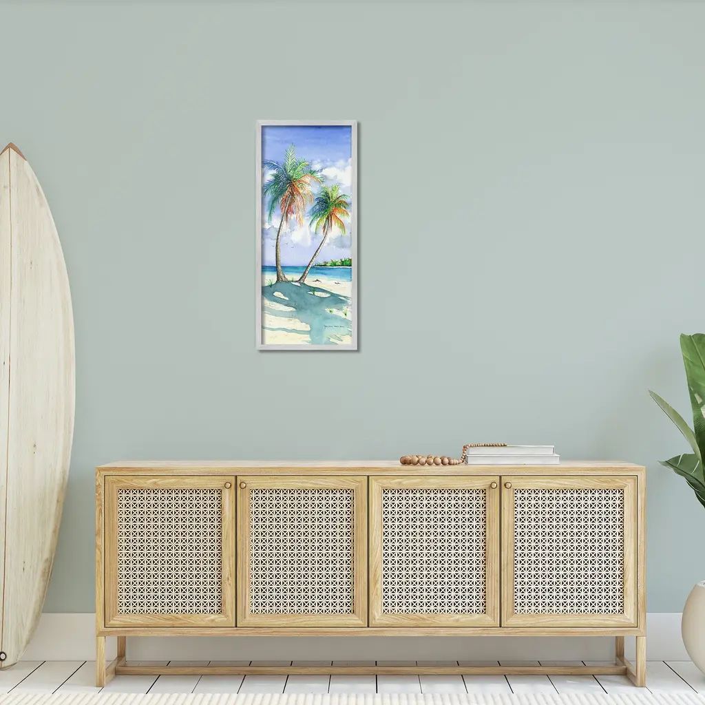 Add dimension to any room with our textured Framed Giclee Artwork. Our framed artwork is securely mounted into a 1.5-inch thick wood grain frame and ready to hang. Frames are available in three alluring styles: black, gray farmhouse and white. In addition, you should check out our oversized options if you want a statement piece. Stupell Wall Art is made in the USA.Features: Dimensions: 10 x 1.5 x 24 FramedFramed Giclee Product Sizes include 10"x24" and 13"x30". All Framed Giclee products have a 1.5" Depth.Wall Art is Ready to Hang with Hardware Free Hanging. No installation required. For Easy Set Up Lean or Layer Artwork on Shelf or Against Wall.Our giclée prints are carefully mounted on a durable MDF backing, and then perfectly finished in a 1.5 inch thick woodgrain frame. Mounted frame colors include black, gray farmhouse and white. Made In USA.Artwork Relates To: Sky, Horizon, Sea, Water, Beach, Coast, Shoreline, Scenery, Sea Waves, Summer, Tropical, Palm TreeDesign by Christine Reichow