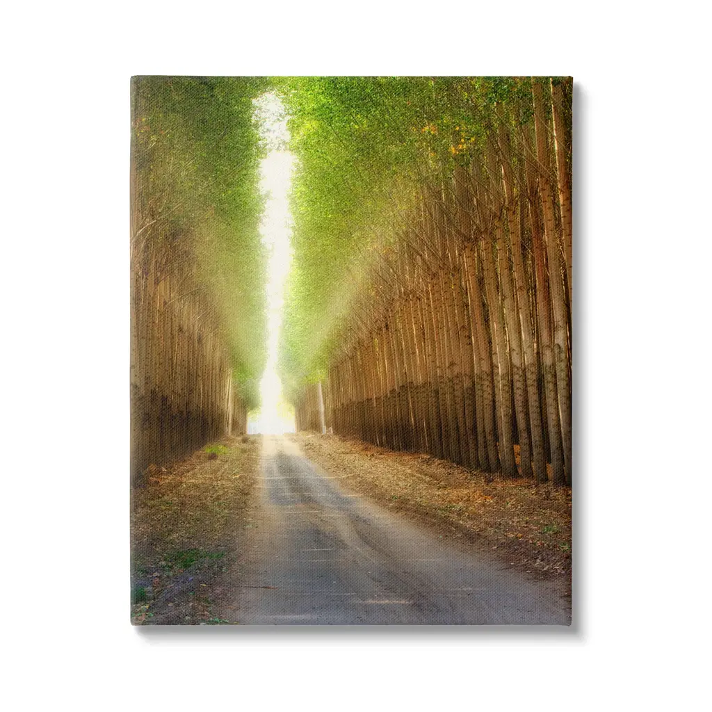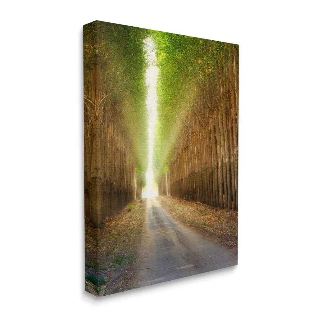 We create our stretched canvas to the highest standards. Using only the highest quality inks and canvas on Mimaki printers, we hand-cut and stretch each piece over a 1.5-inch thick wooden frame for hanging. As a result, the art comes ready to hang on the sturdy ledge with no installation required. Stupell Wall Art is made in the USA.Features: Dimensions: 16 x 1.5 x 20 InchesStretched Canvas Sizes Include Standard: 16 x 1.5 x 20 Large: 20 x 1.5 x 30 X-Large: 30 x 1.5 x 40 Oversized: 36 x 1.5 x 48Wall Art is Ready to Hang - No Installation or Hardware Needed. For Easy Set Up Lean or Layer Artwork on Shelf or Against Wall.Our stretched canvas is created with the highest standards. We use only the highest quality inks and canvas on our in house Mimaki printers, and then hand cut and stretch each piece over a 1.5 inch thick wooden frame for hanging. Made In USA.Artwork Relates To: Path, Plant, Tree, Nature, Scenery, Vegetation, Alley, Woodland, Trail, Sunlight, GroveDesign by Dennis Frates