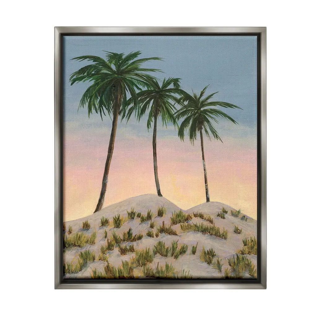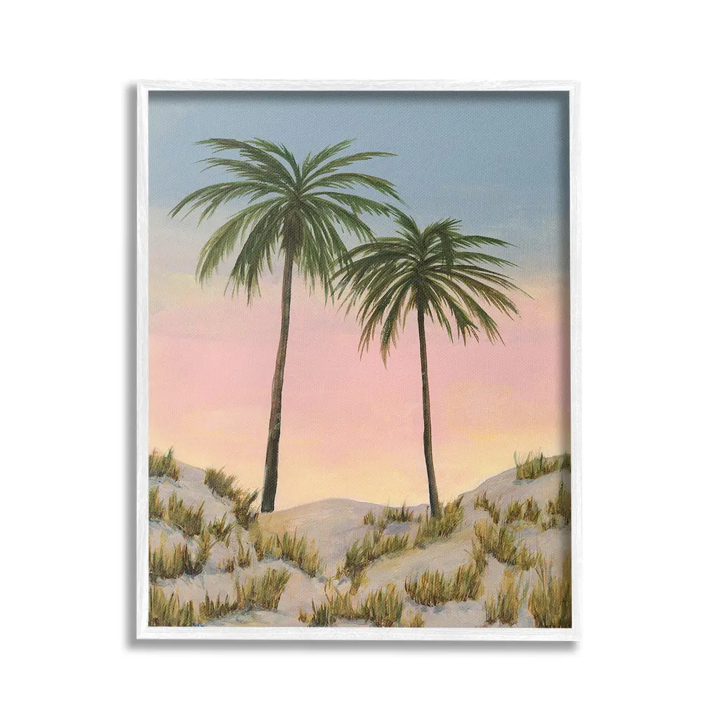 Elevate your home or office to the next level with Stupell Framed Floating Canvas Wall Art. Our premium hand-stretched canvas is mounted securely into a sturdy lightweight frame. The museum-style gap between the wrapped canvas and the box frame gives the illusion of floating artwork. Stupell Wall Art is made in the USA.Features: Dimensions: 17 x 1.7 x 21 Frame, 16 x 1.5 x 20 Canvas ArtFloating Frame Canvas Products are available in sizes 17"x21" and 25"x31". All Floating Frame Canvas Products have a 1.7" Depth.Wall Art is Ready to Hang with Hardware Free Hanging. No Installation required. For Easy Set Up Lean or Layer Artwork on Shelf or Against Wall. Artwork is Permently Fixed into the Frame.Our elevated 1.7" Thick Floating Frame is the perfect complement to our canvas style Wall Art. We use only the highest quality inks in house with industry leading printing solutions. Canvas is hand stretched over a durable wood foundation and then mounted securly into a Modern Box Frame. Made in the USA.Artwork Relates To: Plant, Tree, Palm Tree, Painting, Tropical, Beach, Sunset, Sunrise, Nature, LandscapeDesign by Michael Willett