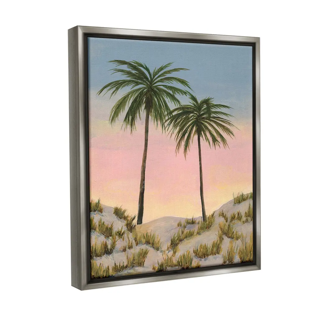 Elevate your home or office to the next level with Stupell Framed Floating Canvas Wall Art. Our premium hand-stretched canvas is mounted securely into a sturdy lightweight frame. The museum-style gap between the wrapped canvas and the box frame gives the illusion of floating artwork. Stupell Wall Art is made in the USA.Features: Dimensions: 17 x 1.7 x 21 Frame, 16 x 1.5 x 20 Canvas ArtFloating Frame Canvas Products are available in sizes 17"x21" and 25"x31". All Floating Frame Canvas Products have a 1.7" Depth.Wall Art is Ready to Hang with Hardware Free Hanging. No Installation required. For Easy Set Up Lean or Layer Artwork on Shelf or Against Wall. Artwork is Permently Fixed into the Frame.Our elevated 1.7" Thick Floating Frame is the perfect complement to our canvas style Wall Art. We use only the highest quality inks in house with industry leading printing solutions. Canvas is hand stretched over a durable wood foundation and then mounted securly into a Modern Box Frame. Made in the USA.Artwork Relates To: Plant, Tree, Palm Tree, Painting, Tropical, Beach, Sunset, Sunrise, Nature, LandscapeDesign by Michael Willett