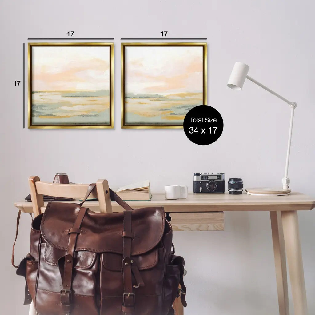 Elevate your home or office to the next level with Stupell Framed Floating Canvas Wall Art. Our premium hand-stretched canvas is mounted securely into a sturdy lightweight frame. The museum-style gap between the wrapped canvas and the box frame gives the illusion of floating artwork. Stupell Wall Art is made in the USA.Features: Dimensions: 2 Piece Set, Each Frame is 18 x 1.7 x 18Two Piece Floating Frame Canvas Products are available as 18"x18" or 25"x25" Panels. All Floating Frame Canvas Products have a 1.7" Depth.Wall Art is Ready to Hang with Hardware Free Hanging. No Installation required. For Easy Set Up Lean or Layer Artwork on Shelf or Against Wall. Artwork is Permently Fixed into the Frame.Our elevated 1.7" Thick Floating Frame is the perfect complement to our canvas style Wall Art. We use only the highest quality inks in house with industry leading printing solutions. Canvas is hand stretched over a durable wood foundation and then mounted securly into a Modern Box Frame. Made in the USA.Artwork Relates To: Painting, Nature, Sky, Horizon, Landscape, Abstract, Modern, Sunset, SunriseDesign by June Erica Vess