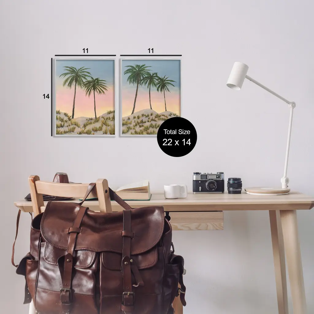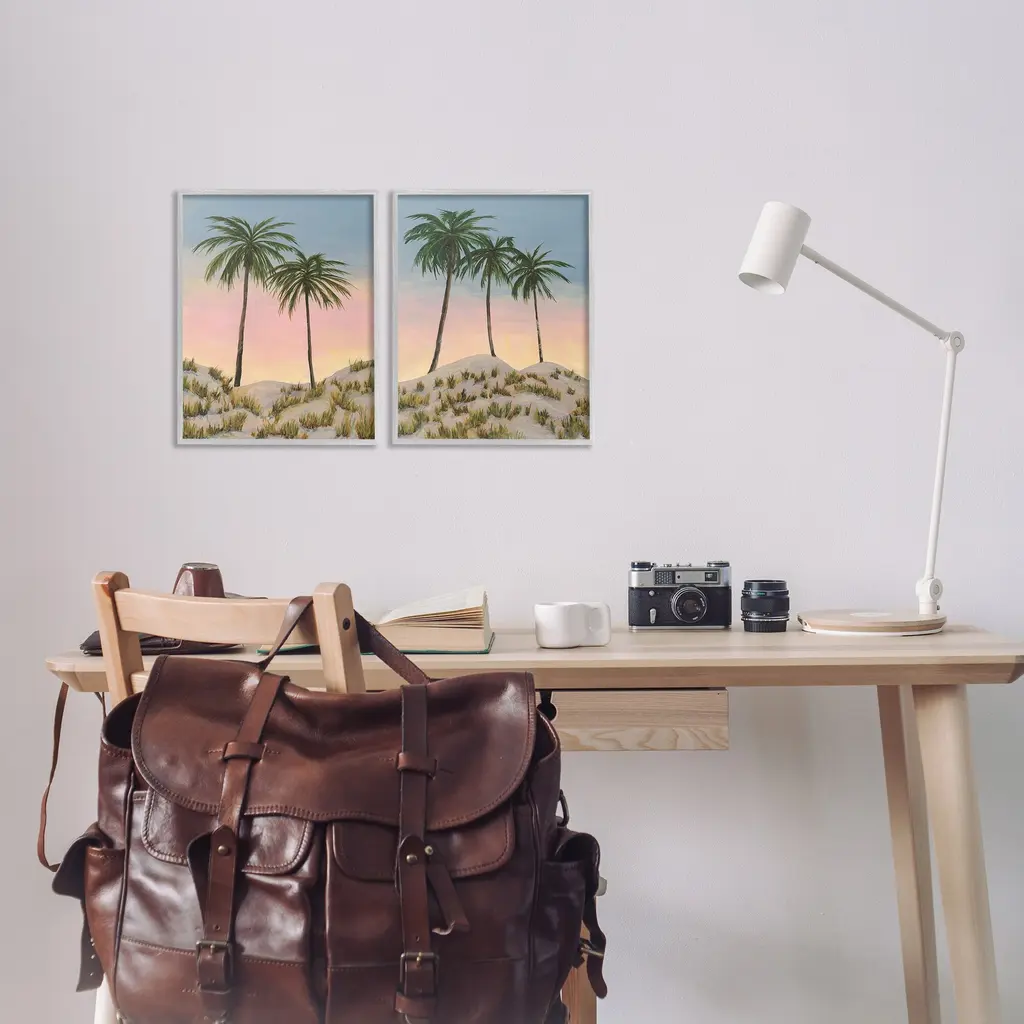 Fill any space in your home or office with our Framed Wall Art Sets. Our framed artwork is securely mounted into a 1.5-inch thick wood grain frame and ready to hang. Frames are available in three alluring styles: black, gray farmhouse and white. Stupell Wall Art is made in the USA.Features: Dimensions: 2 Piece Set, Each Panel is 11 x 1.5 x 14 FramedTwo Piece Framed Giclee Sets are available as 11"x14", 16"x20" or 24"x30" Panels. All Framed Giclee Products have a 1.5" Depth.Wall Art is Ready to Hang with Hardware Free Hanging. No installation required. For Easy Set Up Lean or Layer Artwork on Shelf or Against Wall.Curated Wall Art Sets make it easy for you complete the theme for any room. Our giclée prints are carefully mounted on a durable MDF backing, and then perfectly finished in a 1.5 inch thick woodgrain frame. Mounted frame colors include black, gray farmhouse and white. Made In USA.Artwork Relates To: Plant, Tree, Palm Tree, Painting, Tropical, Beach, Sunset, Sunrise, SummerDesign by Michael Willett