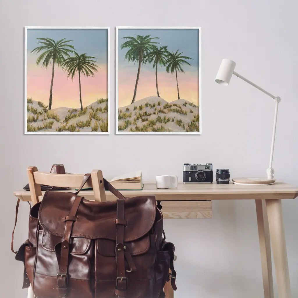 Fill any space in your home or office with our Framed Wall Art Sets. Our framed artwork is securely mounted into a 1.5-inch thick wood grain frame and ready to hang. Frames are available in three alluring styles: black, gray farmhouse and white. Stupell Wall Art is made in the USA.Features: Dimensions: 2 Piece Set, Each Panel is 11 x 1.5 x 14 FramedTwo Piece Framed Giclee Sets are available as 11"x14", 16"x20" or 24"x30" Panels. All Framed Giclee Products have a 1.5" Depth.Wall Art is Ready to Hang with Hardware Free Hanging. No installation required. For Easy Set Up Lean or Layer Artwork on Shelf or Against Wall.Curated Wall Art Sets make it easy for you complete the theme for any room. Our giclée prints are carefully mounted on a durable MDF backing, and then perfectly finished in a 1.5 inch thick woodgrain frame. Mounted frame colors include black, gray farmhouse and white. Made In USA.Artwork Relates To: Plant, Tree, Palm Tree, Painting, Tropical, Beach, Sunset, Sunrise, SummerDesign by Michael Willett