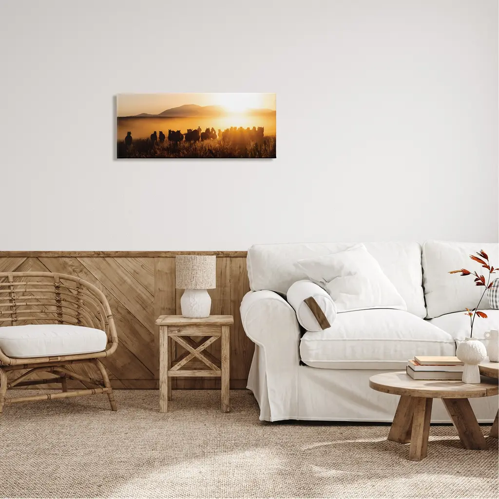 Stupell Sunset Cowboy & Horses Canvas Wall Art Design By Pburchettephoto - 30 X 13
