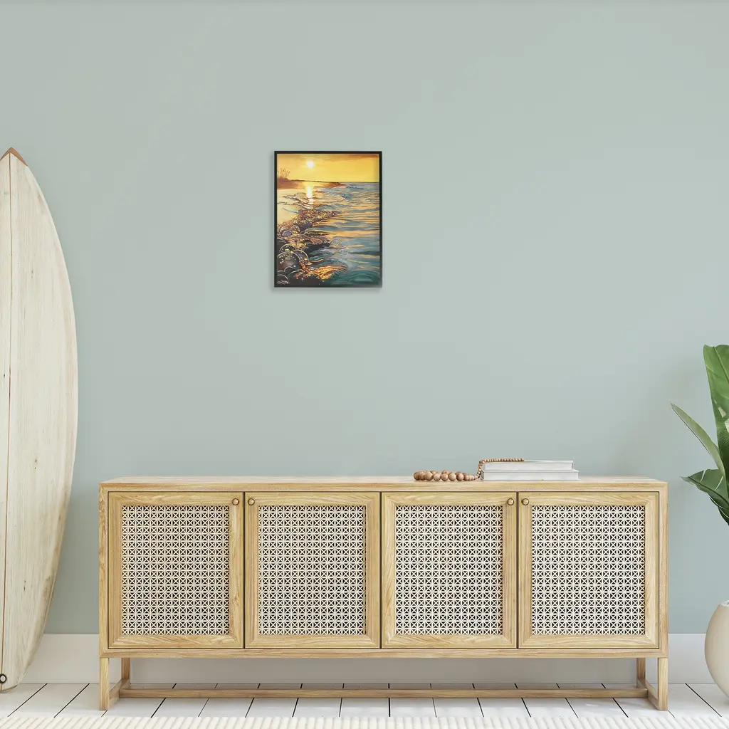 Add dimension to any room with our textured Framed Giclee Artwork. Our framed artwork is securely mounted into a 1.5-inch thick wood grain frame and ready to hang. Frames are available in three alluring styles: black, gray farmhouse and white. In addition, you should check out our oversized options if you want a statement piece. Stupell Wall Art is made in the USA.Features: Dimensions: 11 x 1.5 x 14 FramedFramed Giclee Products are available in the sizes 11"x14", 16"x20" or 24"x30". All Framed Giclee Products have a 1.5" Depth. Wall Art is Ready to Hang with Hardware Free Hanging. No installation required. For Easy Set Up Lean or Layer Artwork on Shelf or Against Wall.Our giclée prints are carefully mounted on a durable MDF backing, and then perfectly finished in a 1.5 inch thick woodgrain frame. Mounted frame colors include black, gray farmhouse and white. Made In USA.Artwork Relates To: Summer, Scenery, Sea, Water, Shoreline, Beach, Coast, Shore, Sunset, Sunrise, ModernDesign by Christine Reichow