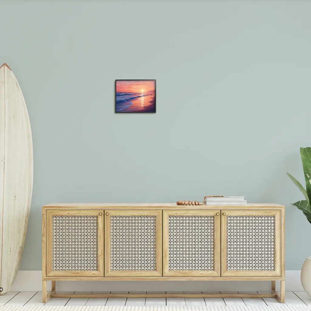 Stupell Sunset Over Beach Waves Framed Giclee Art Design By Imagine It Images - 14 X 11 - Black
