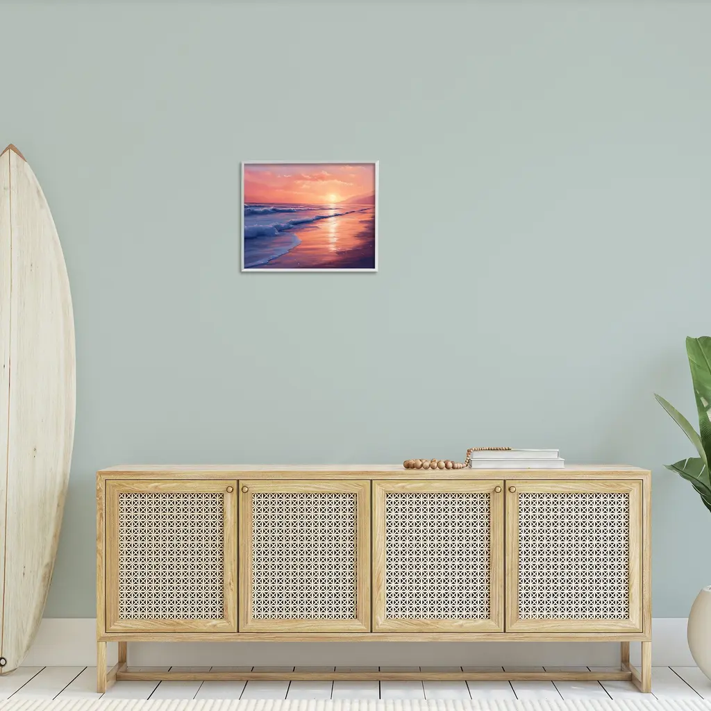Add dimension to any room with our textured Framed Giclee Artwork. Our framed artwork is securely mounted into a 1.5-inch thick wood grain frame and ready to hang. Frames are available in three alluring styles: black, gray farmhouse and white. In addition, you should check out our oversized options if you want a statement piece. Stupell Wall Art is made in the USA.Features: Dimensions: 14 x 1.5 x 11 FramedFramed Giclee Products are available in the sizes 14"x11", 20"x16" or 30"x24". All Framed Giclee Products have a 1.5" Depth. Wall Art is Ready to Hang with Hardware Free Hanging. No installation required. For Easy Set Up Lean or Layer Artwork on Shelf or Against Wall.Our giclée prints are carefully mounted on a durable MDF backing, and then perfectly finished in a 1.5 inch thick woodgrain frame. Mounted frame colors include black, gray farmhouse and white. Made In USA.Artwork Relates To: Beach, Coast, Sea, Shoreline, Nautical, Shore, Sunrise, Sunset, WavesDesign by Imagine It Images