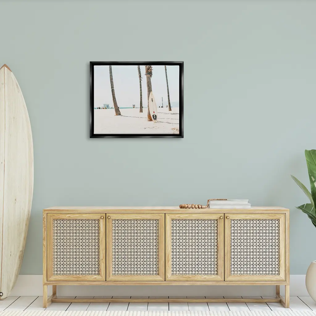 Stupell Surfboard Leaning Tropical Palm Trees Framed Floater Canvas Wall Art By Krista Broadway - 31 X 25 - Black
