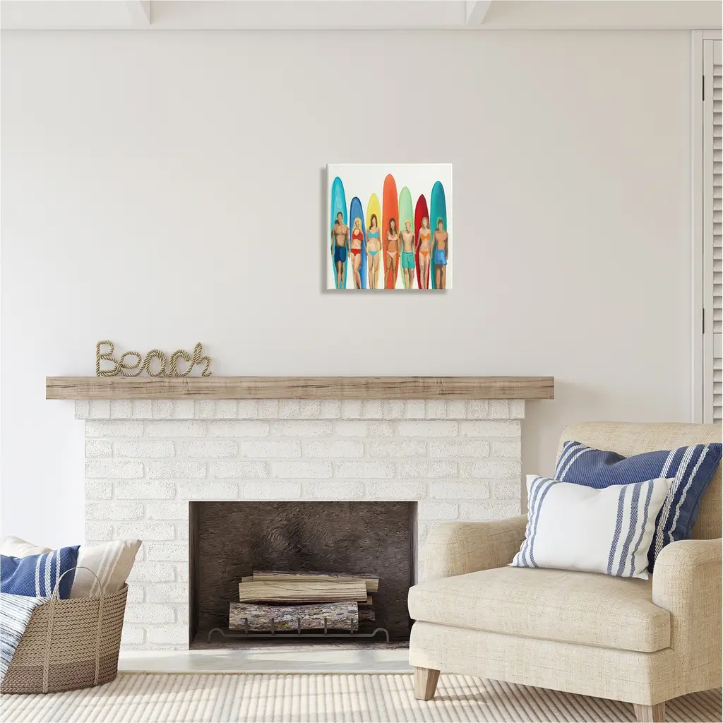 We create our stretched canvas to the highest standards. Using only the highest quality inks and canvas on Mimaki printers, we hand-cut and stretch each piece over a 1.5-inch thick wooden frame for hanging. As a result, the art comes ready to hang on the sturdy ledge with no installation required. Stupell Wall Art is made in the USA.Features: Dimensions: 17 x 1.5 x 17 InchesStretched Canvas Sizes Include Standard: 17 x 1.5 x 17 Large: 24 x 1.5 x 24 X-Large: 30 x 1.5 x 30 Oversized: 36 x 1.5 x 36Wall Art is Ready to Hang with Hardware Free Hanging. No installation required. For Easy Set Up Lean or Layer Artwork on Shelf or Against Wall.Our stretched canvas is created with the highest standards. We use only the highest quality inks and canvas on our in house Mimaki printers, and then hand cut and stretch each piece over a 1.5 inch thick wooden frame for hanging. Made In USA.Artwork Relates To: Sport, Surfing, Swimwear, Surfboard, PeopleDesign by Randy Hibberd
