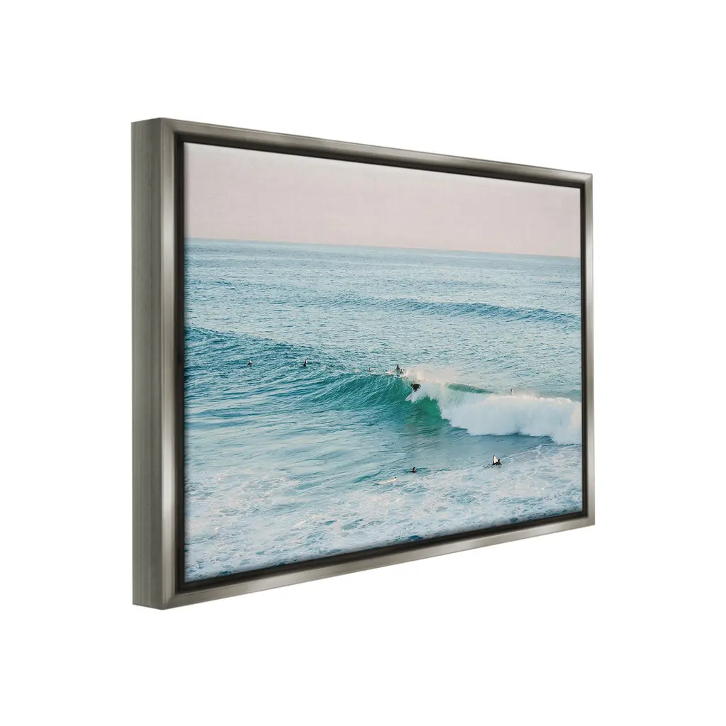 Elevate your home or office to the next level with Stupell Framed Floating Canvas Wall Art. Our premium hand-stretched canvas is mounted securely into a sturdy lightweight frame. The museum-style gap between the wrapped canvas and the box frame gives the illusion of floating artwork. Stupell Wall Art is made in the USA.Features: Dimensions: 21 x 1.7 x 17 Frame, 20 x 1.5 x 16 Canvas ArtFloating Frame Canvas Products are available in sizes 21"x17" and 31"x25". All Floating Frame Canvas Products have a 1.7" Depth.Wall Art is Ready to Hang with Hardware Free Hanging. No Installation required. For Easy Set Up Lean or Layer Artwork on Shelf or Against Wall. Artwork is Permently Fixed into the Frame.Our elevated 1.7" Thick Floating Frame is the perfect complement to our canvas style Wall Art. We use only the highest quality inks in house with industry leading printing solutions. Canvas is hand stretched over a durable wood foundation and then mounted securly into a Modern Box Frame. Made in the USA.Artwork Relates To: Nature, Sea, Water, Sea Waves, Coast, Shoreline, Tsunami, Ocean, Beach, Tropical, Surf, Surfing, PeopleDesign by Sisi and Seb