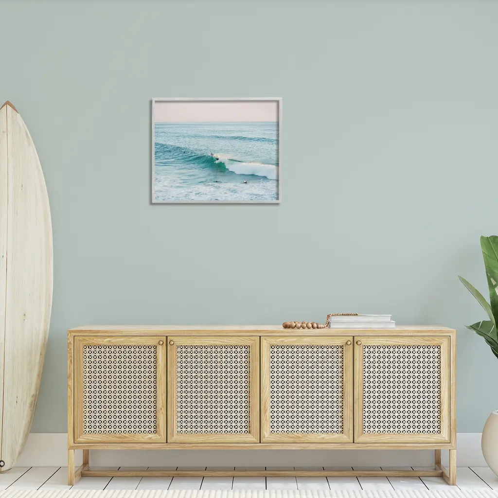 Add dimension to any room with our textured Framed Giclee Artwork. Our framed artwork is securely mounted into a 1.5-inch thick wood grain frame and ready to hang. Frames are available in three alluring styles: black, gray farmhouse and white. In addition, you should check out our oversized options if you want a statement piece. Stupell Wall Art is made in the USA.Features: Dimensions: 14 x 1.5 x 11 FramedFramed Giclee Products are available in the sizes 14"x11", 20"x16" or 30"x24". All Framed Giclee Products have a 1.5" Depth. Wall Art is Ready to Hang with Hardware Free Hanging. No installation required. For Easy Set Up Lean or Layer Artwork on Shelf or Against Wall.Our giclée prints are carefully mounted on a durable MDF backing, and then perfectly finished in a 1.5 inch thick woodgrain frame. Mounted frame colors include black, gray farmhouse and white. Made In USA.Artwork Relates To: Nature, Sea, Water, Sea Waves, Coast, Shoreline, Tsunami, Ocean, Beach, Tropical, Surf, Surfing, PeopleDesign by Sisi and Seb