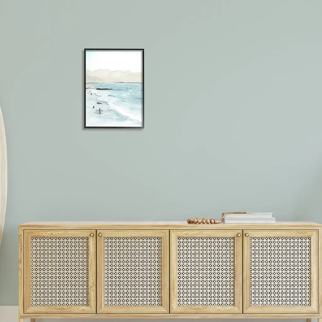 Stupell Surfing Shoreline Sea Waves Foggy Mountains Framed Wall Art, Design By Grace Popp - Blue - 16 X 20 - Black