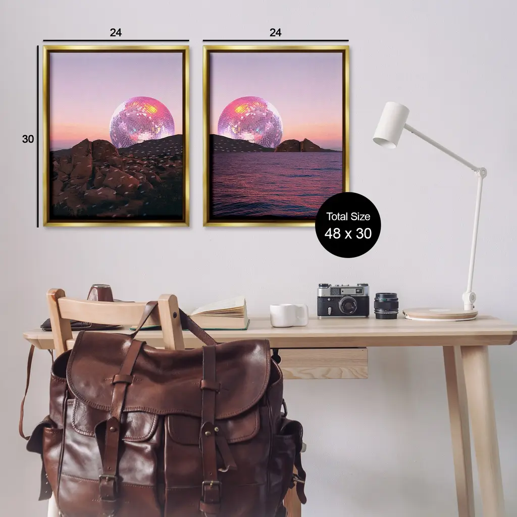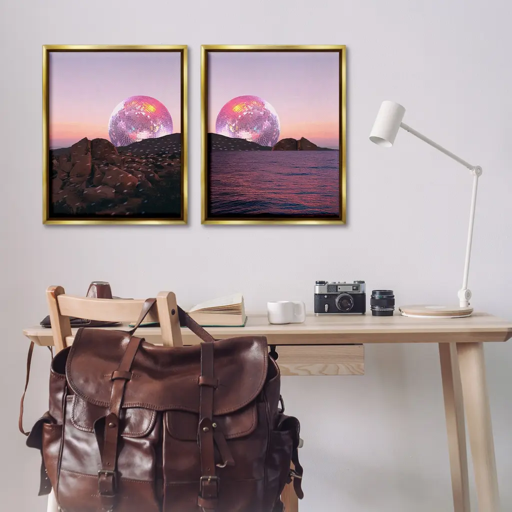 Elevate your home or office to the next level with Stupell Framed Floating Canvas Wall Art. Our premium hand-stretched canvas is mounted securely into a sturdy lightweight frame. The museum-style gap between the wrapped canvas and the box frame gives the illusion of floating artwork. Stupell Wall Art is made in the USA.Features: Dimensions: 2 Piece Set, Each Frame is 17 x 1.7 x 21Two Piece Floater Framed Canvas are available as 17x21 or 25x31 Panels. All Floater Frame Products have a 1.7" Depth.Wall Art is Ready to Hang with Hardware Free Hanging. No Installation required. For Easy Set Up Lean or Layer Artwork on Shelf or Against Wall. Artwork is Permently Fixed into the Frame.Our elevated 1.7" Thick Floating Frame is the perfect complement to our canvas style Wall Art. We use only the highest quality inks in house with industry leading printing solutions. Canvas is hand stretched over a durable wood foundation and then mounted securly into a Modern Box Frame. Made in the USA.Artwork Relates To: Sphere, Nature, Rock, Sky, Moon, Disco Ball, Music, Dance, Surreal, Modern, Abstract, Water, Sea, Beach, OceanDesign by Lil' Rue