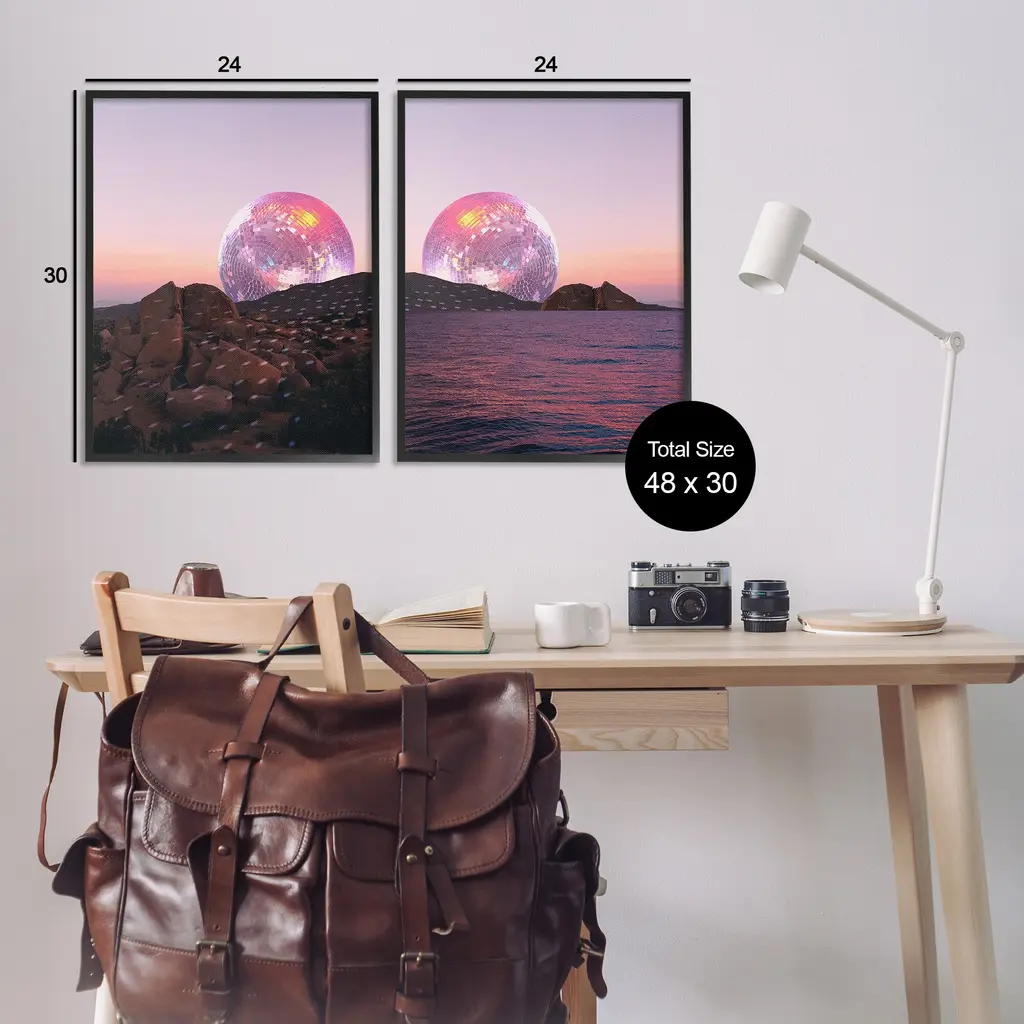 Fill any space in your home or office with our Framed Wall Art Sets. Our framed artwork is securely mounted into a 1.5-inch thick wood grain frame and ready to hang. Frames are available in three alluring styles: black, gray farmhouse and white. Stupell Wall Art is made in the USA.Features: Dimensions: 2 Piece Set, Each Panel is 11 x 1.5 x 14 FramedTwo Piece Framed Giclee Sets are available as 11"x14", 16"x20" or 24"x30" Panels. All Framed Giclee Products have a 1.5" Depth.Wall Art is Ready to Hang with Hardware Free Hanging. No installation required. For Easy Set Up Lean or Layer Artwork on Shelf or Against Wall.Curated Wall Art Sets make it easy for you complete the theme for any room. Our giclée prints are carefully mounted on a durable MDF backing, and then perfectly finished in a 1.5 inch thick woodgrain frame. Mounted frame colors include black, gray farmhouse and white. Made In USA.Artwork Relates To: Sphere, Nature, Rock, Sky, Moon, Disco Ball, Music, Dance, Surreal, Modern, Abstract, Water, Sea, Beach, OceanDesign by Lil' Rue