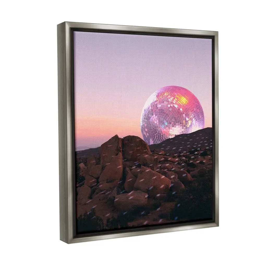 Elevate your home or office to the next level with Stupell Framed Floating Canvas Wall Art. Our premium hand-stretched canvas is mounted securely into a sturdy lightweight frame. The museum-style gap between the wrapped canvas and the box frame gives the illusion of floating artwork. Stupell Wall Art is made in the USA.Features: Dimensions: 17 x 1.7 x 21 Frame, 16 x 1.5 x 20 Canvas ArtFloating Frame Canvas Products are available in sizes 17"x21" and 25"x31". All Floating Frame Canvas Products have a 1.7" Depth.Wall Art is Ready to Hang with Hardware Free Hanging. No Installation required. For Easy Set Up Lean or Layer Artwork on Shelf or Against Wall. Artwork is Permently Fixed into the Frame.Our elevated 1.7" Thick Floating Frame is the perfect complement to our canvas style Wall Art. We use only the highest quality inks in house with industry leading printing solutions. Canvas is hand stretched over a durable wood foundation and then mounted securly into a Modern Box Frame. Made in the USA.Artwork Relates To: Dance, Music, Disco, Pattern, Abstract, Shape, Modern, Glam, Nature, Landscape, SurrealDesign by Lil' Rue