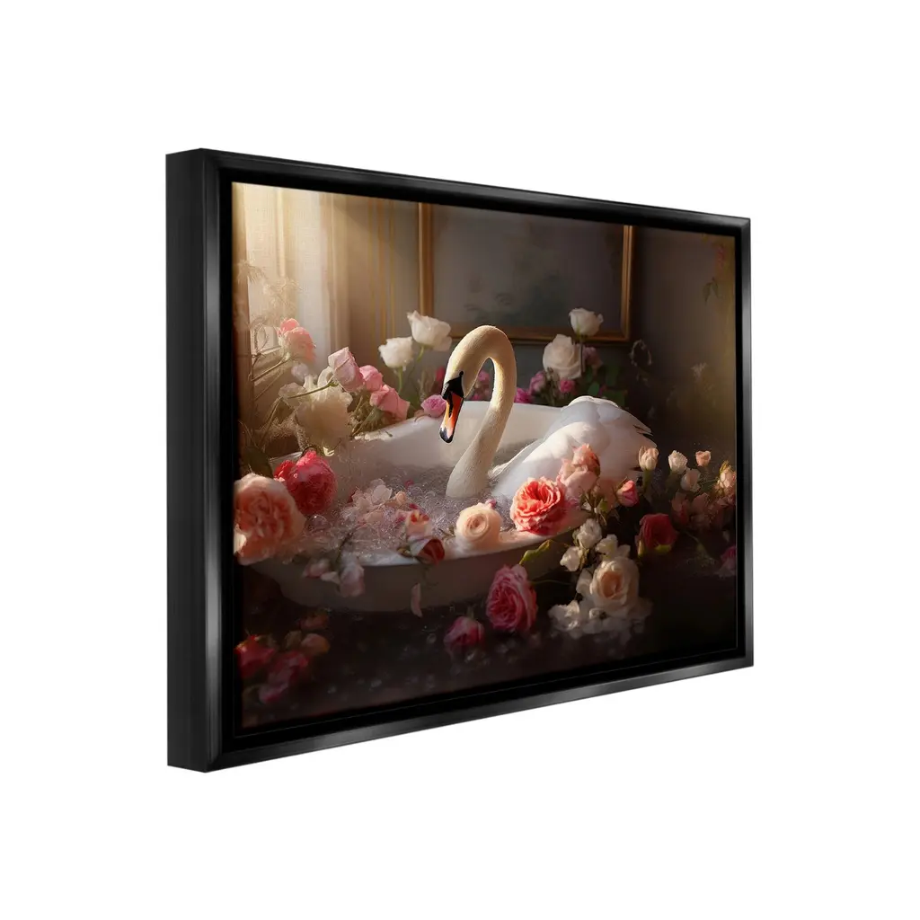 Elevate your home or office to the next level with Stupell Framed Floating Canvas Wall Art. Our premium hand-stretched canvas is mounted securely into a sturdy lightweight frame. The museum-style gap between the wrapped canvas and the box frame gives the illusion of floating artwork. Stupell Wall Art is made in the USA.Features: Dimensions: 21 x 1.7 x 17 Frame, 20 x 1.5 x 16 Canvas ArtFloating Frame Canvas Products are available in sizes 21"x17" and 31"x25". All Floating Frame Canvas Products have a 1.7" Depth.Wall Art is Ready to Hang with Hardware Free Hanging. No Installation required. For Easy Set Up Lean or Layer Artwork on Shelf or Against Wall. Artwork is Permently Fixed into the Frame.Our elevated 1.7" Thick Floating Frame is the perfect complement to our canvas style Wall Art. We use only the highest quality inks in house with industry leading printing solutions. Canvas is hand stretched over a durable wood foundation and then mounted securly into a Modern Box Frame. Made in the USA.Artwork Relates To: Bathroom, Animal, Tub, Flower, Blossom, Bird, Swan, RosesDesign by Lazar Studio