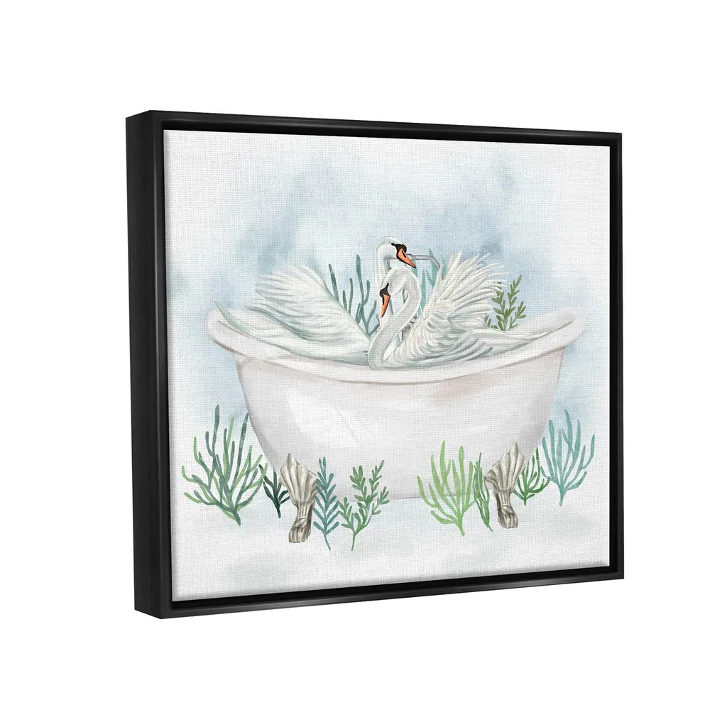 Elevate your home or office to the next level with Stupell Framed Floating Canvas Wall Art. Our premium hand stretched canvas is mounted securly into a sturdy lightweight frame. The museum style gap between wrapped canvas and box frame gives the illusion of floating artwork. Features: Dimensions: 21 x 1.7 x 17 Frame, 20 x 1.5 x 16 Canvas ArtFloating Frame Sizes Include Standard: 21 x 1.7 x 17 Oversized: 31 x 1.7 x 25Wall Art is Ready to Hang - No Installation or Hardware Needed. For Easy Set Up Lean or Layer Artwork on Shelf or Against Wall.Our elevated 1.7" Thick Floating Frame is the perfect complement to our canvas style Wall Art. We use only the highest quality inks in house with industry leading printing solutions. Canvas is hand stretched over a durable wood foundation and then mounted securly into a Modern Box Frame. Made in the USA.Artwork Relates To: Swan, Animal, Bird, Tub, Plant, Bathtub, Bathing, Waterfowl, CoralDesign by Ziwei Li