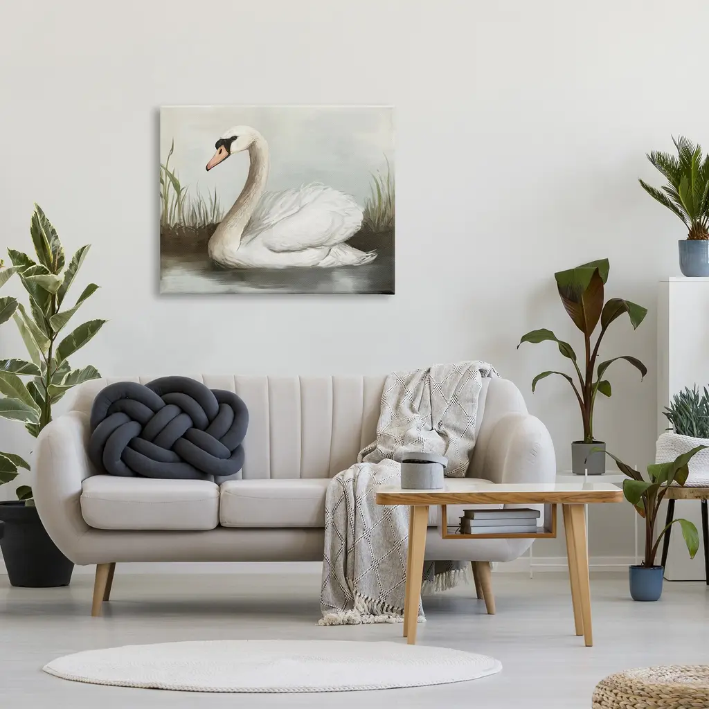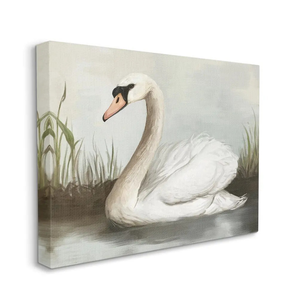 We create our stretched canvas to the highest standards. Using only the highest quality inks and canvas on Mimaki printers, we hand-cut and stretch each piece over a 1.5-inch thick wooden frame for hanging. As a result, the art comes ready to hang on the sturdy ledge with no installation required. Stupell Wall Art is made in the USA.Features: Dimensions: 20 x 1.5 x 16 InchesStretched Canvas Sizes Include Standard: 20 x 1.5 x 16 Large: 30 x 1.5 x 20 X-Large: 40 x 1.5 x 30 Oversized: 48 x 1.5 x 36Wall Art is Ready to Hang - No Installation or Hardware Needed. For Easy Set Up Lean or Layer Artwork on Shelf or Against Wall.Our stretched canvas is created with the highest standards. We use only the highest quality inks and canvas on our in house Mimaki printers, and then hand cut and stretch each piece over a 1.5 inch thick wooden frame for hanging. Made In USA.Artwork Relates To: Animal, Bird, Swan, Waterfowl, Beak, Water, Pond, PaintingDesign by Ziwei Li