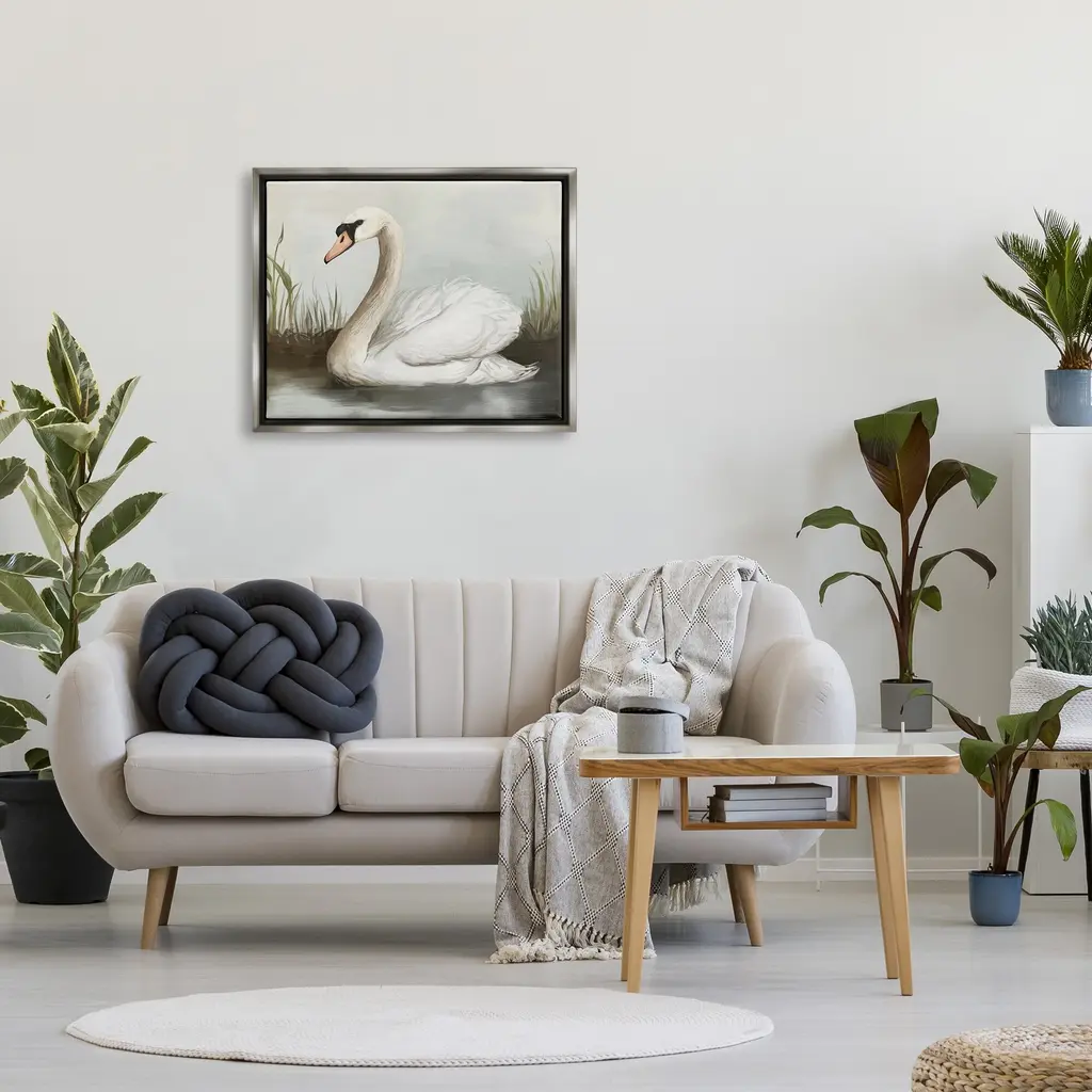Elevate your home or office to the next level with Stupell Framed Floating Canvas Wall Art. Our premium hand-stretched canvas is mounted securely into a sturdy lightweight frame. The museum-style gap between the wrapped canvas and the box frame gives the illusion of floating artwork. Stupell Wall Art is made in the USA.Features: Dimensions: 21 x 1.7 x 17 Frame, 20 x 1.5 x 16 Canvas ArtFloating Frame Sizes Include Standard: 21 x 1.7 x 17 Oversized: 31 x 1.7 x 25Wall Art is Ready to Hang - No Installation or Hardware Needed. For Easy Set Up Lean or Layer Artwork on Shelf or Against Wall.Our elevated 1.7" Thick Floating Frame is the perfect complement to our canvas style Wall Art. We use only the highest quality inks in house with industry leading printing solutions. Canvas is hand stretched over a durable wood foundation and then mounted securly into a Modern Box Frame. Made in the USA.Artwork Relates To: Animal, Bird, Swan, Waterfowl, Beak, Water, Pond, PaintingDesign by Ziwei Li