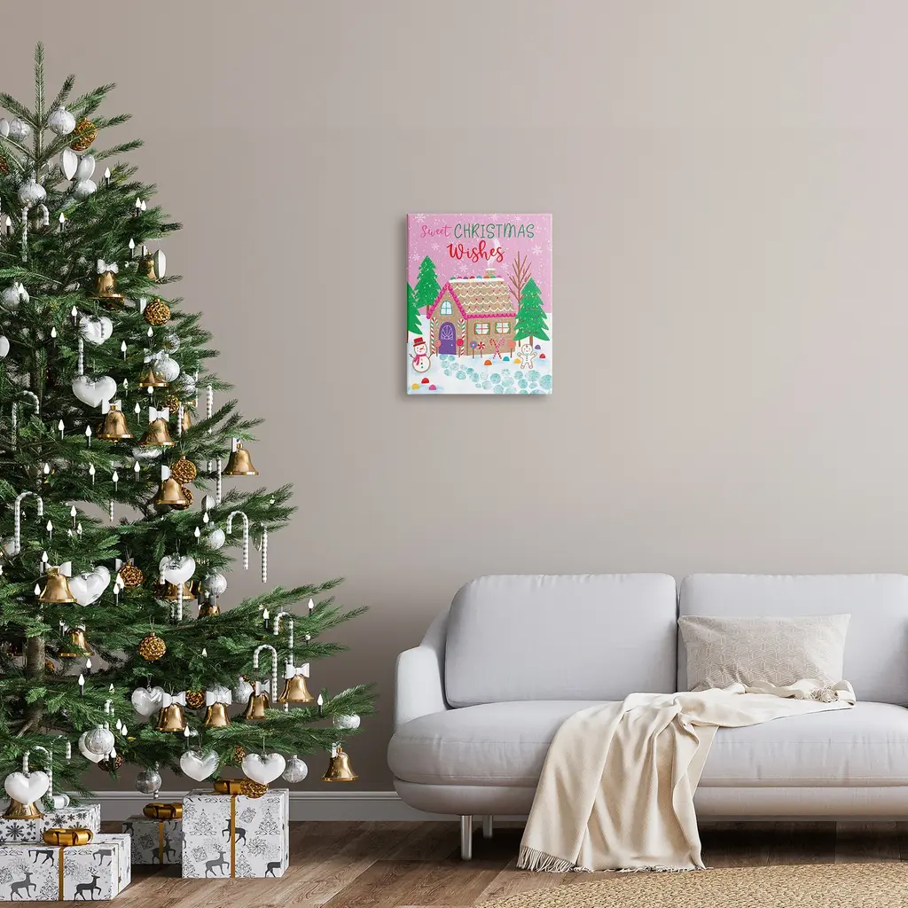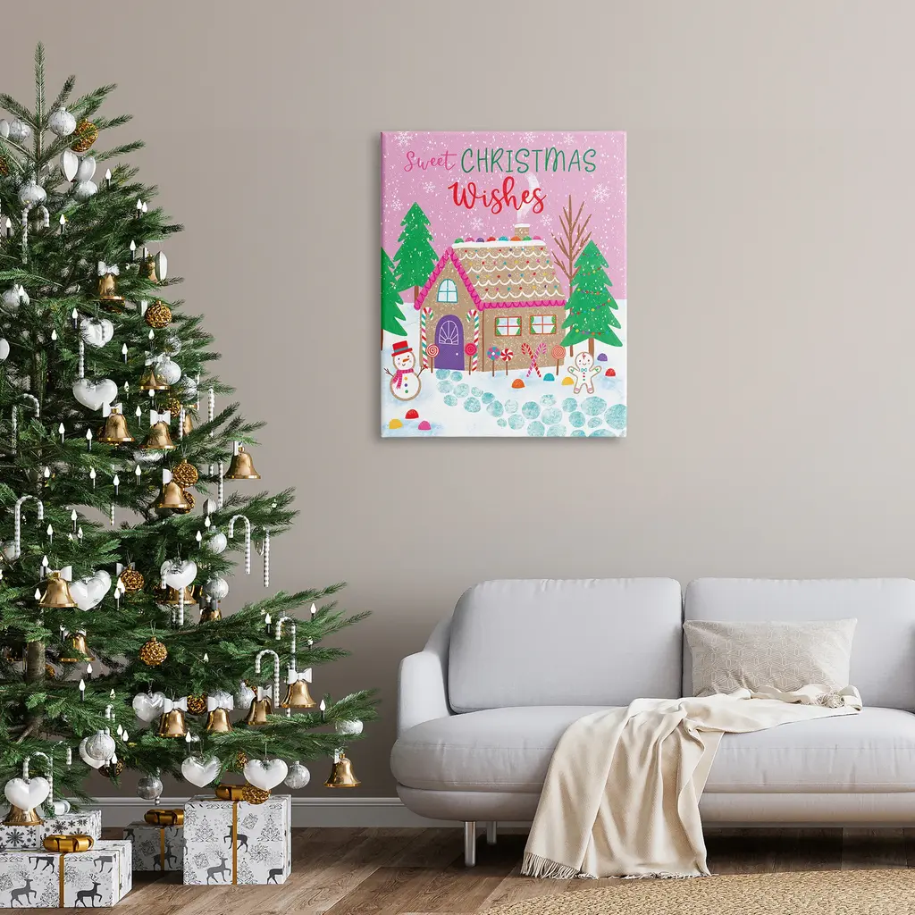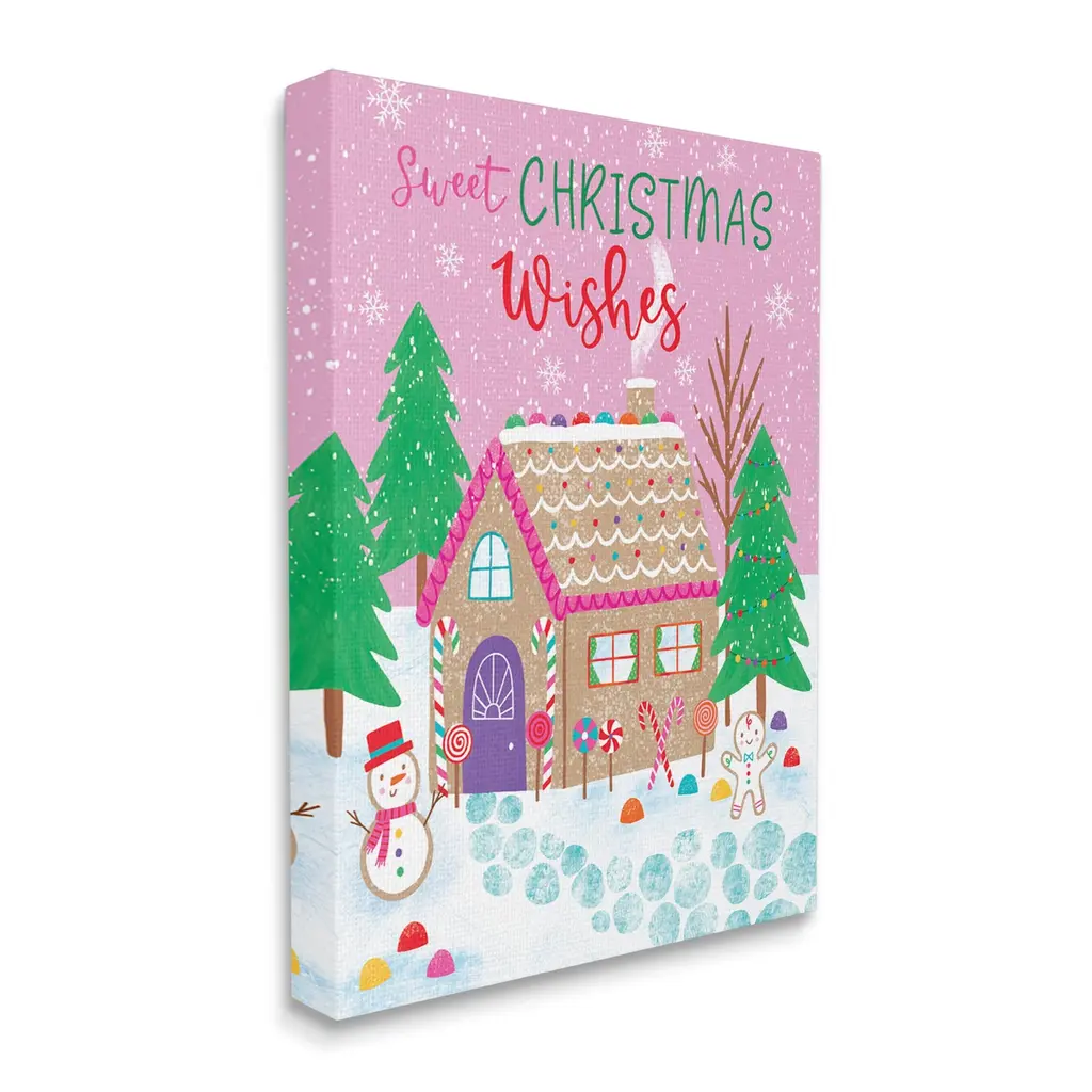 Stupell Sweet Christmas Wishes Quirky Candy Gingerbread House Canvas Wall Art - Multi-Color - 16 X 20