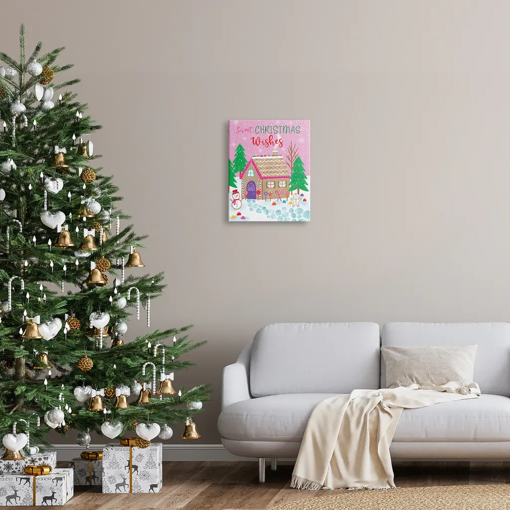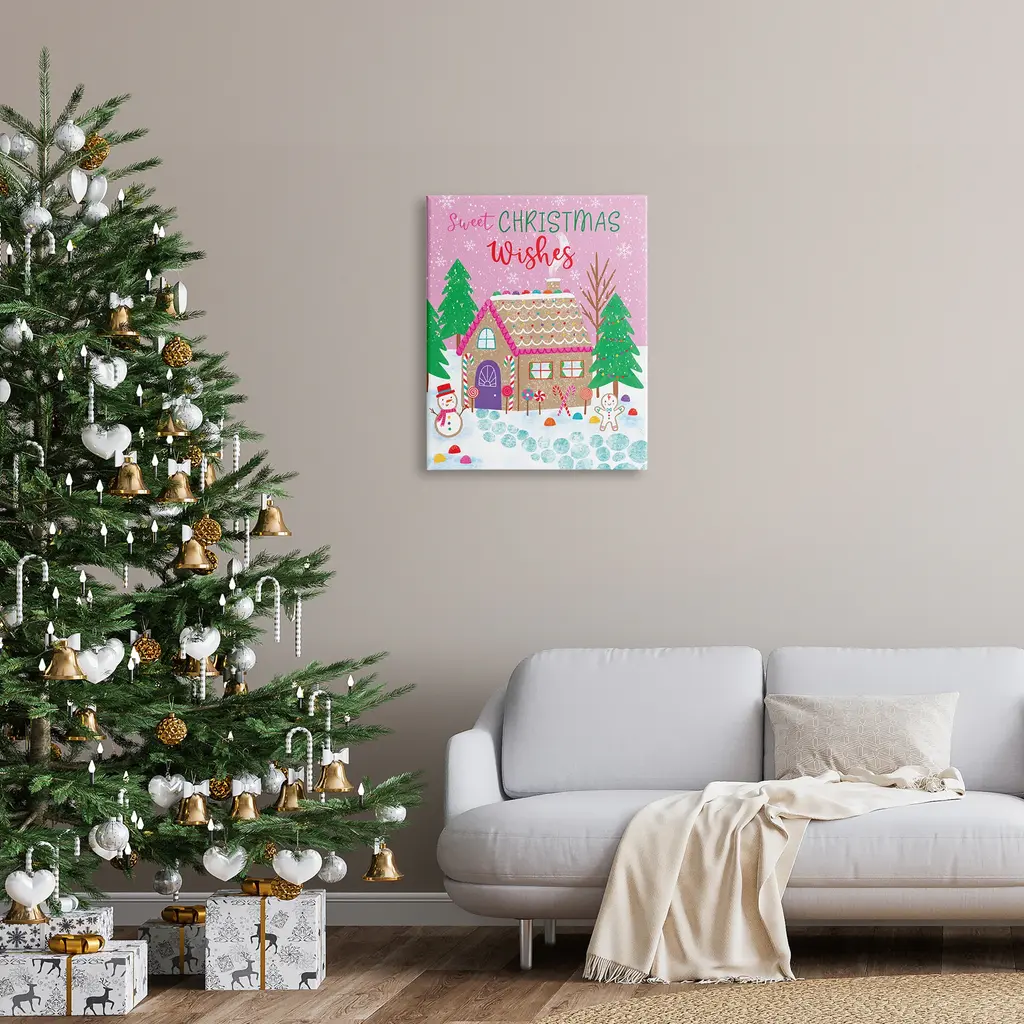 Stupell Sweet Christmas Wishes Quirky Candy Gingerbread House Canvas Wall Art - Multi-Color - 24 X 30