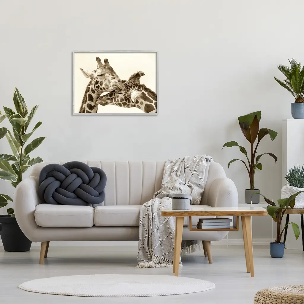 Stupell Sweet Cuddling Giraffes Sepia Wildlife Photography Portrait Framed Wall Art, Design By Carrie Ann Grippo-Pike - Tan - 30 X 24 - Grey