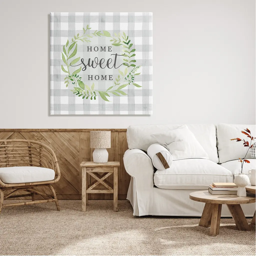 Stupell Sweet Home On Grey Gingham Canvas Wall Art Design By Lux + Me Designs - 36 X 36