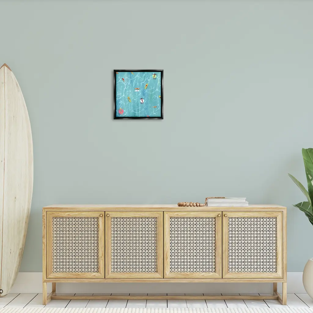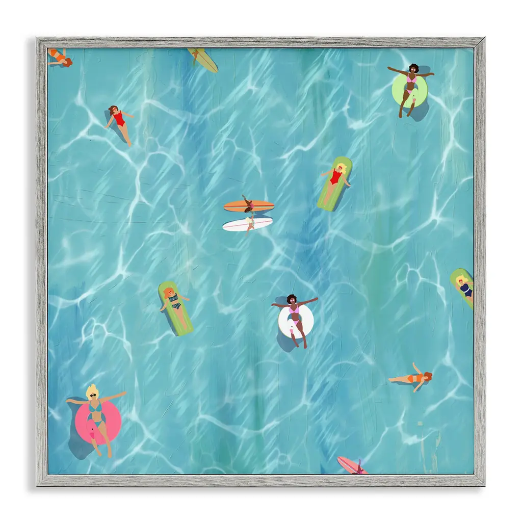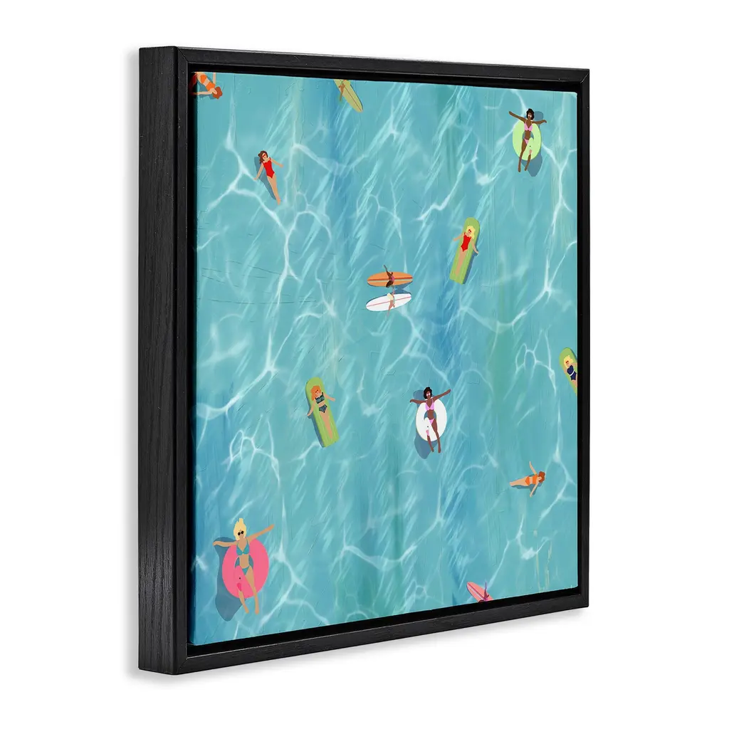 Elevate your home or office to the next level with Stupell Framed Floating Canvas Wall Art. Our premium hand-stretched canvas is mounted securely into a sturdy lightweight frame. The museum-style gap between the wrapped canvas and the box frame gives the illusion of floating artwork. Stupell Wall Art is made in the USA.Features: Dimensions: 18 x 1.7 x 18 Frame, 17 x 1.5 x 17 Canvas ArtFloating Frame Canvas Products are available in sizes 18"x18" and 25"x25". All Floating Frame Canvas Products have a 1.7" Depth.Wall Art is Ready to Hang with Hardware Free Hanging. No Installation required. For Easy Set Up Lean or Layer Artwork on Shelf or Against Wall. Artwork is Permently Fixed into the Frame.Our elevated 1.7" Thick Floating Frame is the perfect complement to our canvas style Wall Art. We use only the highest quality inks in house with industry leading printing solutions. Canvas is hand stretched over a durable wood foundation and then mounted securly into a Modern Box Frame. Made in the USA.Artwork Relates To: Leisure Activities, Person, Swimming, Water, Pool, Ocean, Summer, Surfboard, VacationDesign by Ashley Singleton