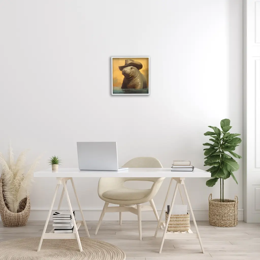 Add dimension to any room with our textured Framed Giclee Artwork. Our framed artwork is securely mounted into a 1.5-inch thick wood grain frame and ready to hang. Frames are available in three alluring styles: black, gray farmhouse and white. In addition, you should check out our oversized options if you want a statement piece. Stupell Wall Art is made in the USA.Features: Dimensions: 12 x 1.5 x 12 FramedFramed Giclee Product Sizes Include 12"x12", 17"x17", and 24"x24". Framed Giclee Products have a 1.5" Depth. Wall Art is Ready to Hang with Hardware Free Hanging. No installation required. For Easy Set Up Lean or Layer Artwork on Shelf or Against Wall.Our giclée prints are carefully mounted on a durable MDF backing, and then perfectly finished in a 1.5 inch thick woodgrain frame. Mounted frame colors include black, gray farmhouse and white. Made In USA.Artwork Relates To: Animal, Mammal, Wildlife, Manatee, Sea Life, Cowboy Hat, Nautical, Marine, FashionDesign by RB