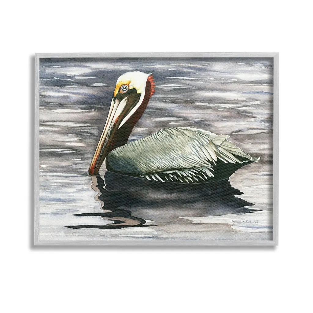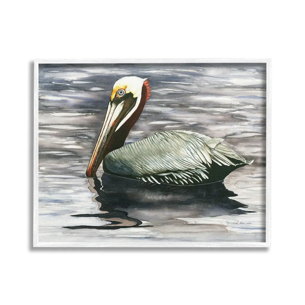 Elevate your home or office to the next level with Stupell Framed Floating Canvas Wall Art. Our premium hand-stretched canvas is mounted securely into a sturdy lightweight frame. The museum-style gap between the wrapped canvas and the box frame gives the illusion of floating artwork. Stupell Wall Art is made in the USA.Features: Dimensions: 21 x 1.7 x 17 Frame, 20 x 1.5 x 16 Canvas ArtFloating Frame Canvas Products are available in sizes 21"x17" and 31"x25". All Floating Frame Canvas Products have a 1.7" Depth.Wall Art is Ready to Hang with Hardware Free Hanging. No Installation required. For Easy Set Up Lean or Layer Artwork on Shelf or Against Wall. Artwork is Permently Fixed into the Frame.Our elevated 1.7" Thick Floating Frame is the perfect complement to our canvas style Wall Art. We use only the highest quality inks in house with industry leading printing solutions. Canvas is hand stretched over a durable wood foundation and then mounted securly into a Modern Box Frame. Made in the USA.Artwork Relates To: Animal, Bird, Waterfowl, Pelican, Beak, Water, SeaDesign by Christine Reichow