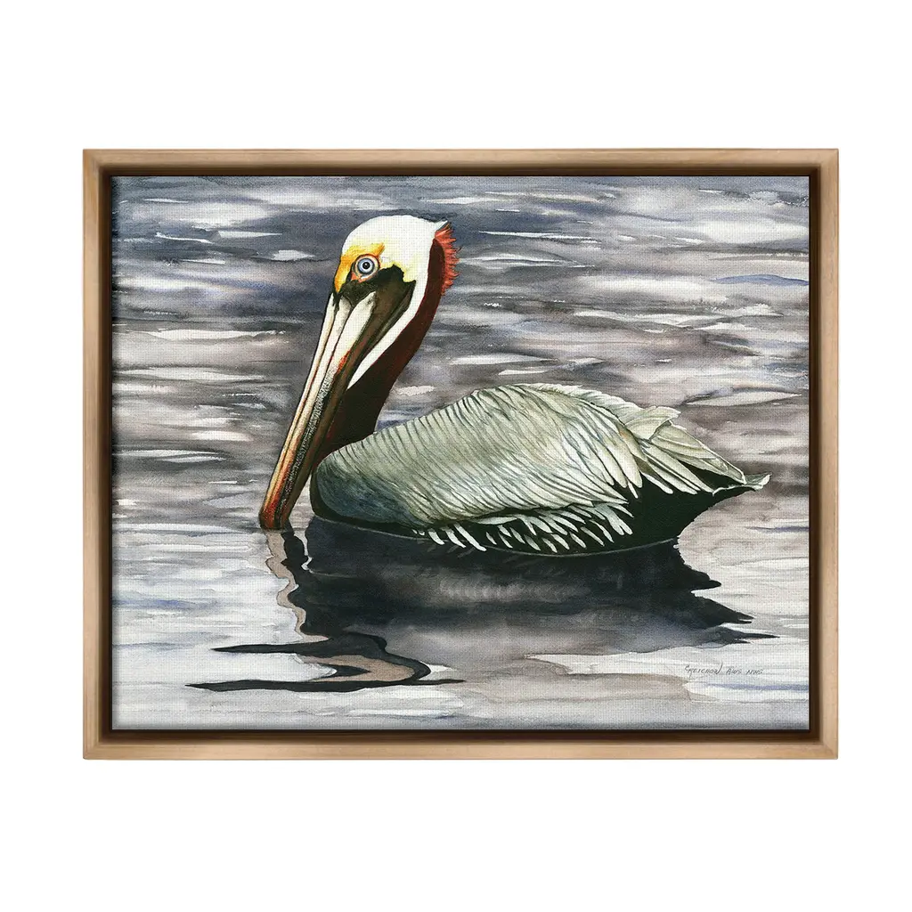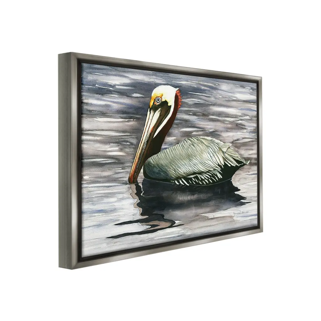 Elevate your home or office to the next level with Stupell Framed Floating Canvas Wall Art. Our premium hand-stretched canvas is mounted securely into a sturdy lightweight frame. The museum-style gap between the wrapped canvas and the box frame gives the illusion of floating artwork. Stupell Wall Art is made in the USA.Features: Dimensions: 21 x 1.7 x 17 Frame, 20 x 1.5 x 16 Canvas ArtFloating Frame Canvas Products are available in sizes 21"x17" and 31"x25". All Floating Frame Canvas Products have a 1.7" Depth.Wall Art is Ready to Hang with Hardware Free Hanging. No Installation required. For Easy Set Up Lean or Layer Artwork on Shelf or Against Wall. Artwork is Permently Fixed into the Frame.Our elevated 1.7" Thick Floating Frame is the perfect complement to our canvas style Wall Art. We use only the highest quality inks in house with industry leading printing solutions. Canvas is hand stretched over a durable wood foundation and then mounted securly into a Modern Box Frame. Made in the USA.Artwork Relates To: Animal, Bird, Waterfowl, Pelican, Beak, Water, SeaDesign by Christine Reichow
