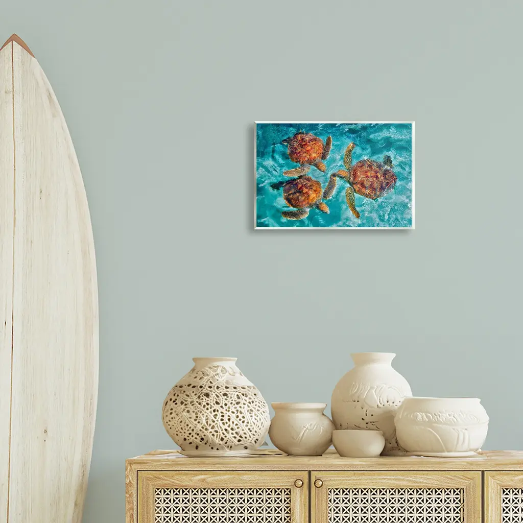 Our wall plaques start as high-quality lithograph prints mounted on durable 0.5-inch thick MDF wood. Each piece is hand finished and comes with a fresh layer of white foil on the sides to give it a crisp, clean look. Plaques arrive ready to hang without installation and come with removable plastic corners to keep them from damage in transit. Stupell Wall Art is made in the USA.Features: Dimensions: 15 x 0.5 x 10 InchesWall Plaque Product Sizes Include 15"x10" and 19"x13". All wall plaque products have a 0.5" Depth. Wall Art is Ready to Hang with Hardware Free Hanging. No installation required. For Easy Set Up Lean or Layer Artwork on Shelf or Against Wall.All of our wall plaques start off as high quality lithograph prints that are then mounted on durable 0.5 inch thick MDF wood. Each piece is hand finished and comes with a fresh layer of foil on the sides to give it a crisp clean look. Made In USA.Artwork Relates To: Animal, Sea Life, Sea Turtle, Turtle, Tortoise, WaterDesign by Dennis Frates