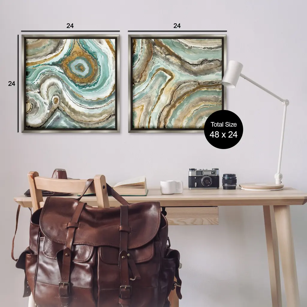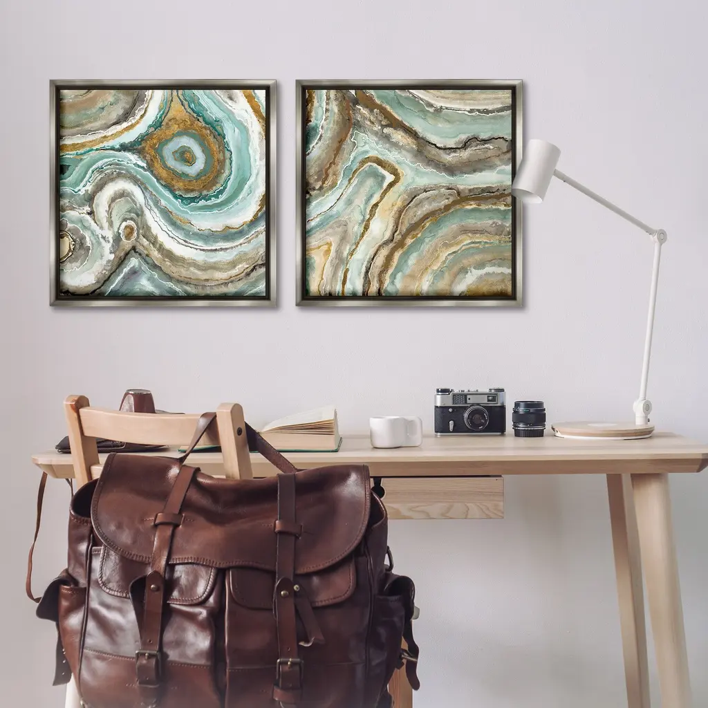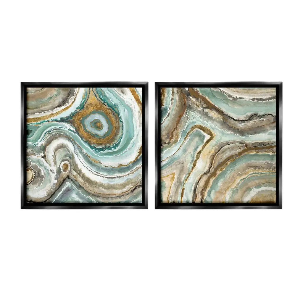 Elevate your home or office to the next level with Stupell Framed Floating Canvas Wall Art. Our premium hand-stretched canvas is mounted securely into a sturdy lightweight frame. The museum-style gap between the wrapped canvas and the box frame gives the illusion of floating artwork. Stupell Wall Art is made in the USA.Features: Dimensions: 2 Piece Set, Each Frame is 18 x 1.7 x 18Two Piece Floating Frame Canvas Products are available as 18"x18" or 25"x25" Panels. All Floating Frame Canvas Products have a 1.7" Depth.Wall Art is Ready to Hang with Hardware Free Hanging. No Installation required. For Easy Set Up Lean or Layer Artwork on Shelf or Against Wall. Artwork is Permently Fixed into the Frame.Our elevated 1.7" Thick Floating Frame is the perfect complement to our canvas style Wall Art. We use only the highest quality inks in house with industry leading printing solutions. Canvas is hand stretched over a durable wood foundation and then mounted securly into a Modern Box Frame. Made in the USA.Artwork Relates To: Abstract, Modern, Pattern, Agate, Geode, Rock, NatureDesign by Liz Jardine
