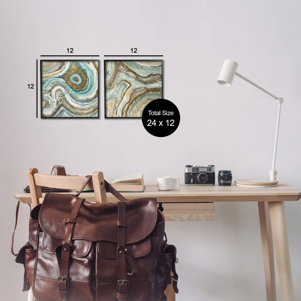 Fill any space in your home or office with our Framed Wall Art Sets. Our framed artwork is securely mounted into a 1.5-inch thick wood grain frame and ready to hang. Frames are available in three alluring styles: black, gray farmhouse and white. Stupell Wall Art is made in the USA.Features: Dimensions: 2 Piece Set, Each Panel is 12 x 1.5 x 12 FramedTwo Piece Framed Giclee Sets are available as 12"x12", 17"x17" or 24"x24" Panels. All Framed giclee Products have a 1.5" Depth.Wall Art is Ready to Hang with Hardware Free Hanging. No installation required. For Easy Set Up Lean or Layer Artwork on Shelf or Against Wall.Curated Wall Art Sets make it easy for you complete the theme for any room. Our giclée prints are carefully mounted on a durable MDF backing, and then perfectly finished in a 1.5 inch thick woodgrain frame. Mounted frame colors include black, gray farmhouse and white. Made In USA.Artwork Relates To: Abstract, Modern, Pattern, Agate, Geode, Rock, NatureDesign by Liz Jardine