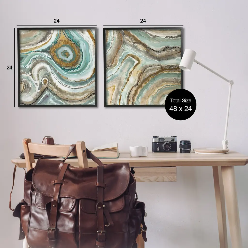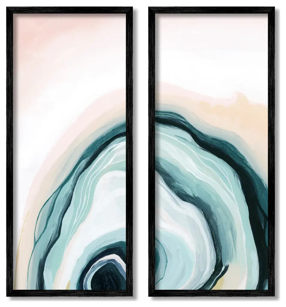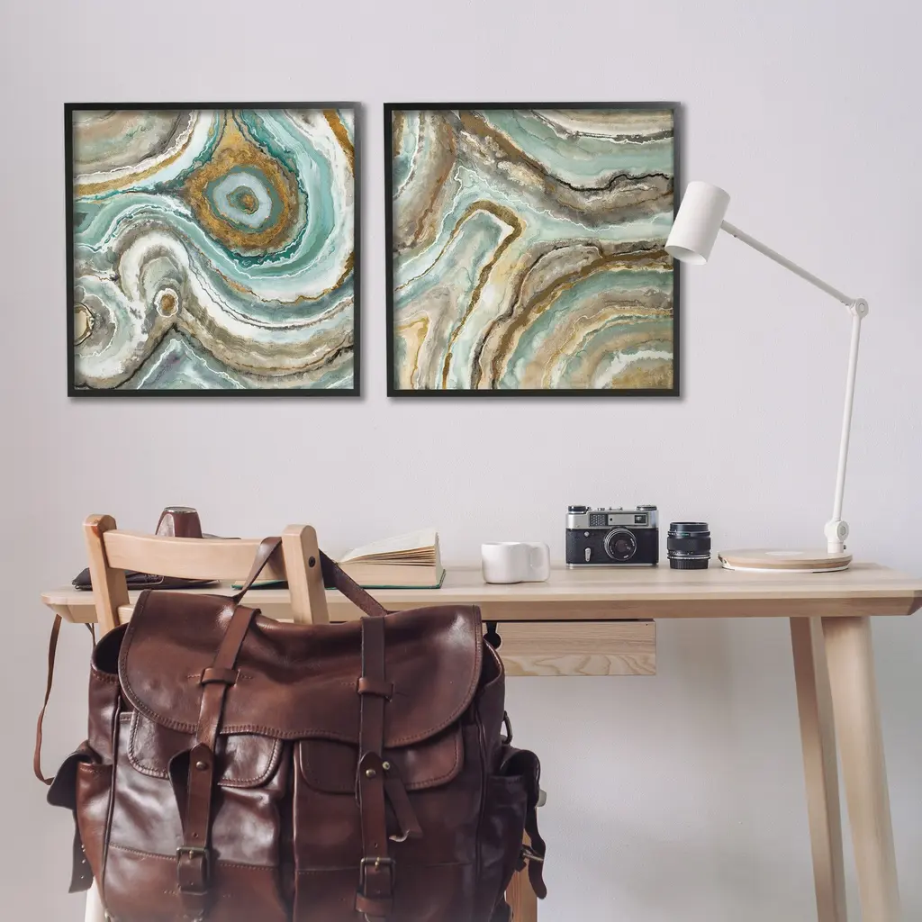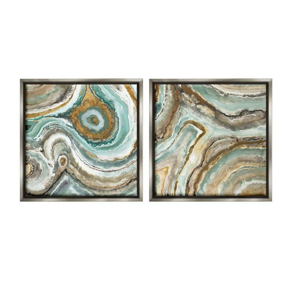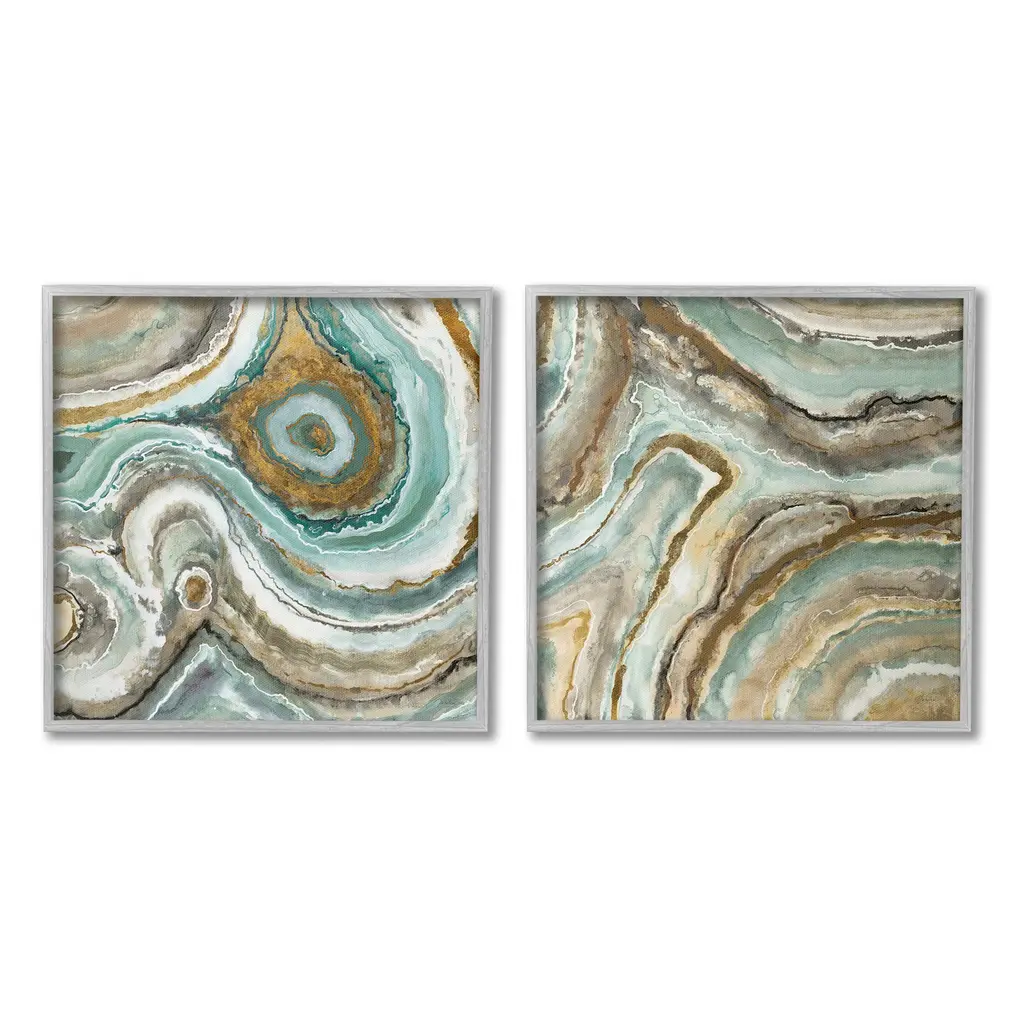 Fill any space in your home or office with our Framed Wall Art Sets. Our framed artwork is securely mounted into a 1.5-inch thick wood grain frame and ready to hang. Frames are available in three alluring styles: black, gray farmhouse and white. Stupell Wall Art is made in the USA.Features: Dimensions: 2 Piece Set, Each Panel is 12 x 1.5 x 12 FramedTwo Piece Framed Giclee Sets are available as 12"x12", 17"x17" or 24"x24" Panels. All Framed giclee Products have a 1.5" Depth.Wall Art is Ready to Hang with Hardware Free Hanging. No installation required. For Easy Set Up Lean or Layer Artwork on Shelf or Against Wall.Curated Wall Art Sets make it easy for you complete the theme for any room. Our giclée prints are carefully mounted on a durable MDF backing, and then perfectly finished in a 1.5 inch thick woodgrain frame. Mounted frame colors include black, gray farmhouse and white. Made In USA.Artwork Relates To: Abstract, Modern, Pattern, Agate, Geode, Rock, NatureDesign by Liz Jardine