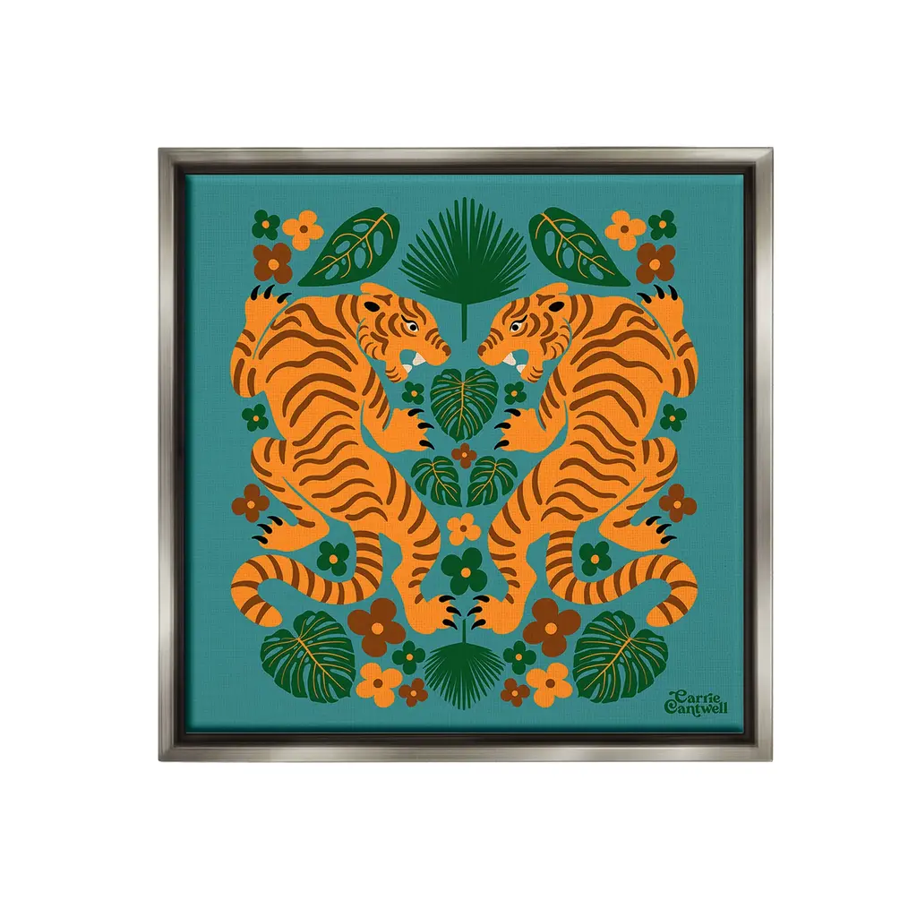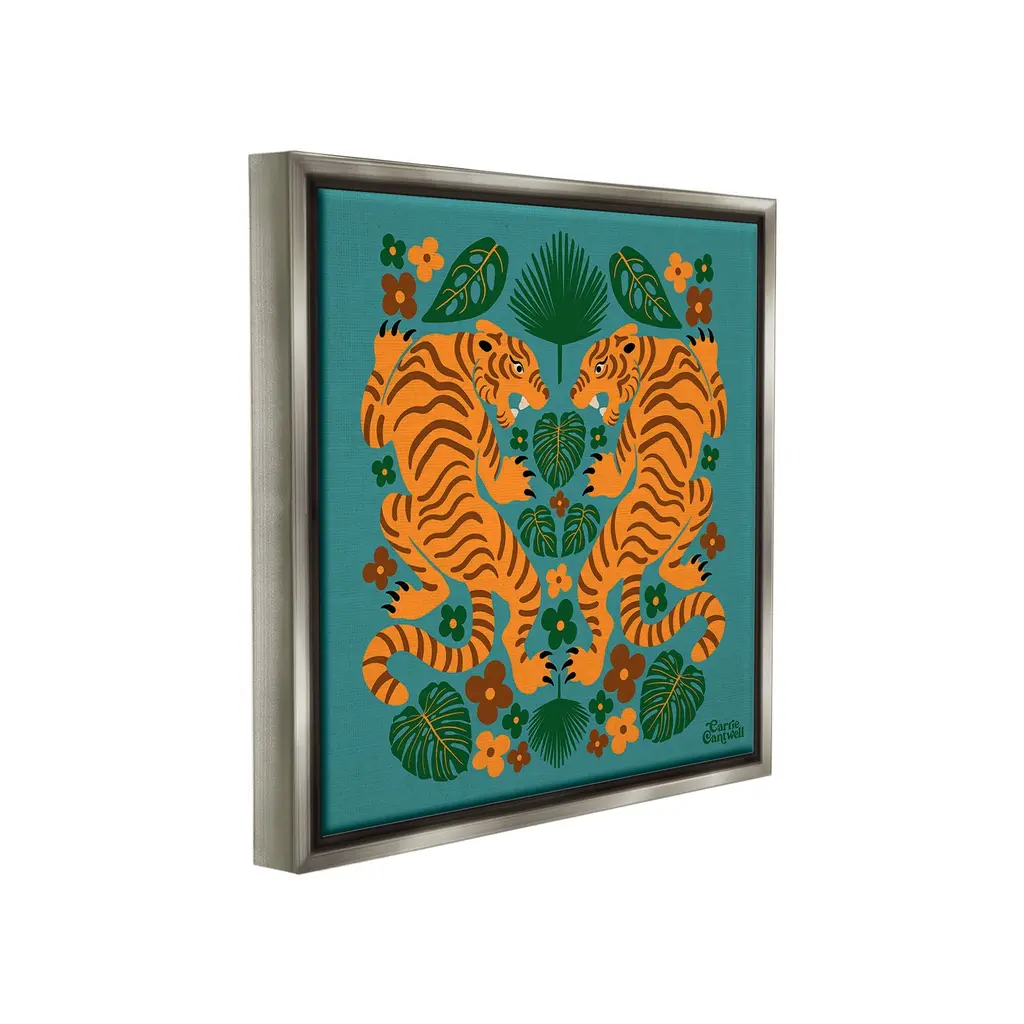 Stupell Symmetrical Tigers & Nature Framed Floater Canvas Wall Art Design By Carrie Cantwell - 18 X 18 - Grey
