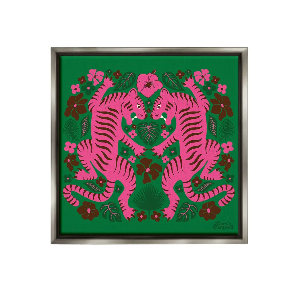 Elevate your home or office to the next level with Stupell Framed Floating Canvas Wall Art. Our premium hand-stretched canvas is mounted securely into a sturdy lightweight frame. The museum-style gap between the wrapped canvas and the box frame gives the illusion of floating artwork. Stupell Wall Art is made in the USA.Features: Dimensions: 18 x 1.7 x 18 Frame, 17 x 1.5 x 17 Canvas ArtFloating Frame Canvas Products are available in sizes 18"x18" and 25"x25". All Floating Frame Canvas Products have a 1.7" Depth.Wall Art is Ready to Hang with Hardware Free Hanging. No Installation required. For Easy Set Up Lean or Layer Artwork on Shelf or Against Wall. Artwork is Permently Fixed into the Frame.Our elevated 1.7" Thick Floating Frame is the perfect complement to our canvas style Wall Art. We use only the highest quality inks in house with industry leading printing solutions. Canvas is hand stretched over a durable wood foundation and then mounted securly into a Modern Box Frame. Made in the USA.Artwork Relates To: Pattern, Floral, Animal, Mammal, Tiger, Wildlife, Plant, Leaf, Nature, Flower, PatternDesign by Carrie Cantwell